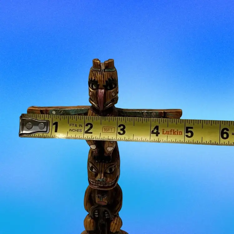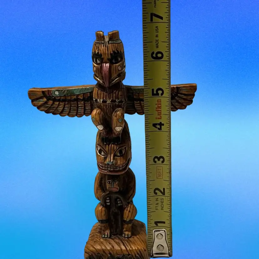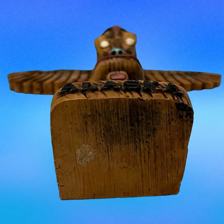 ALASKA Totem Pole Vintage 6 1/4” Resin ALASKA HAND PAINTED. This likely a souvenir piece from Alaska. It is very detailed and hand painted. There are no chips or cracks; exact measurements are in the accompanying photos.