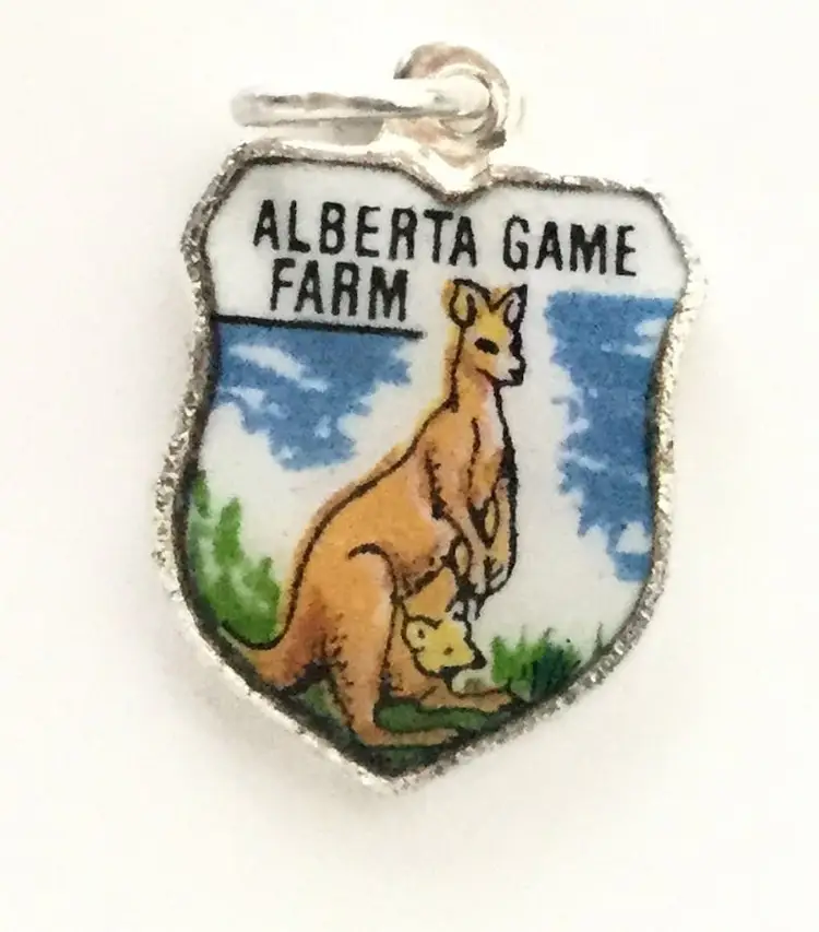 Alberta Game Farm Kangaroo - Vintage Enamel Souvenir Travel Shield Bracelet Charm - 925 Sterling Silver