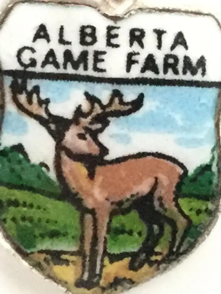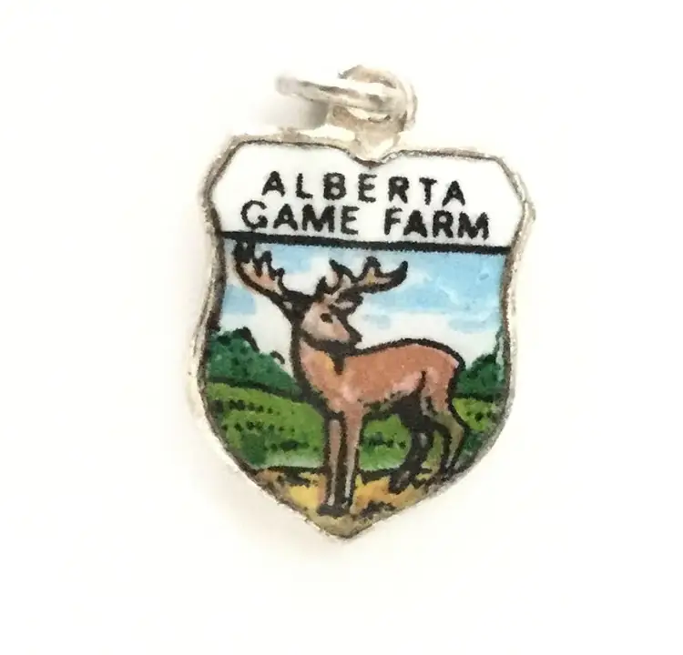 Alberta Game Farm Moose Vintage Enamel Souvenir Travel Shield Bracelet Charm - 925 Sterling Silver