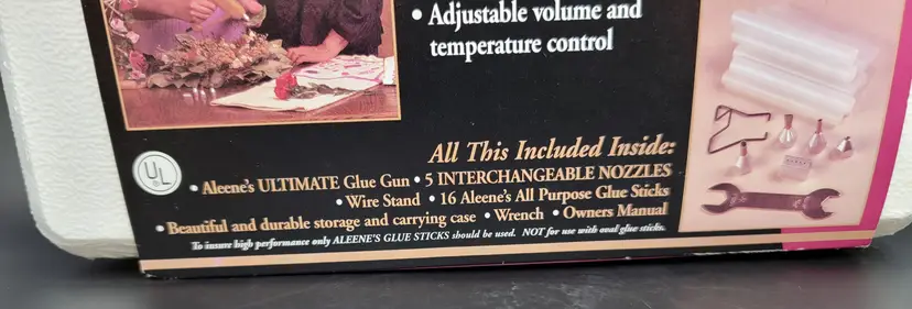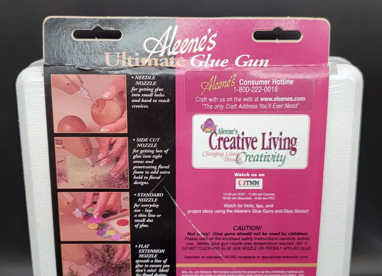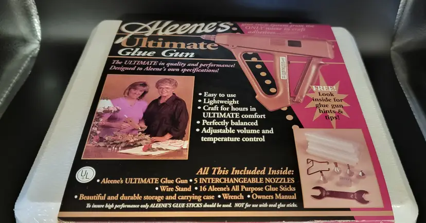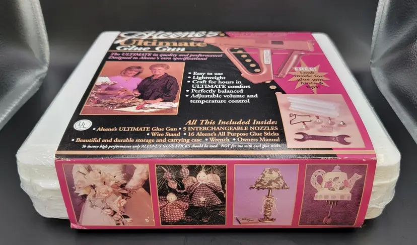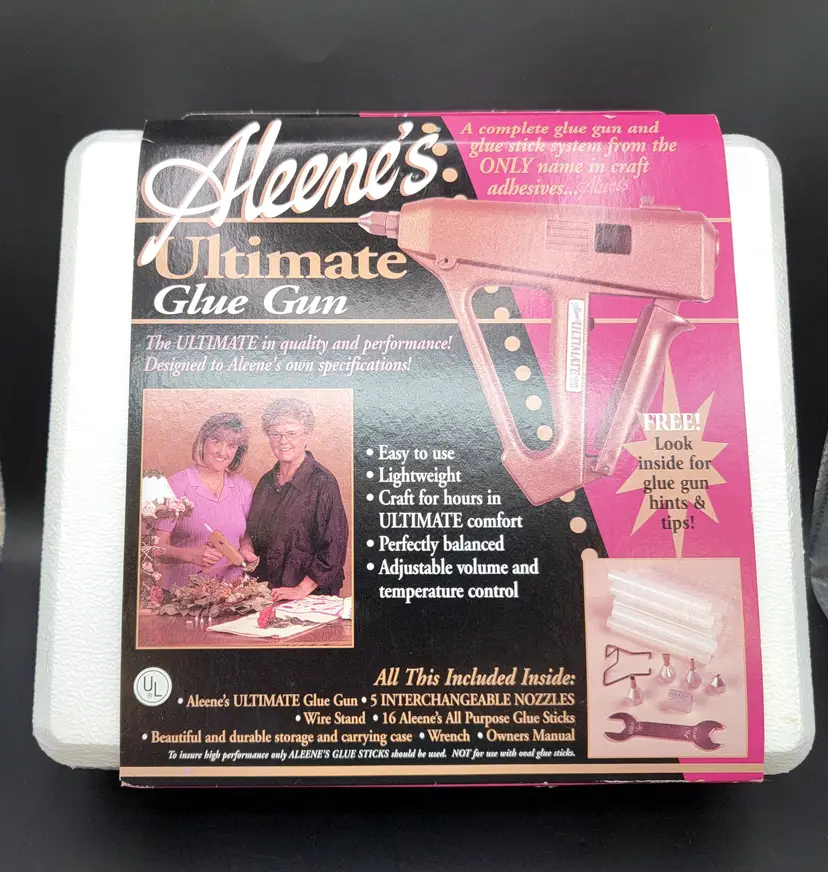 Unopened Vintage 1998 new old stock. Aleene's Ultimate Glue gun kit. Unopened shrink wrapped plastic case. 10 inches x 9 inches x 2 1/2 inches Please see All Photos.