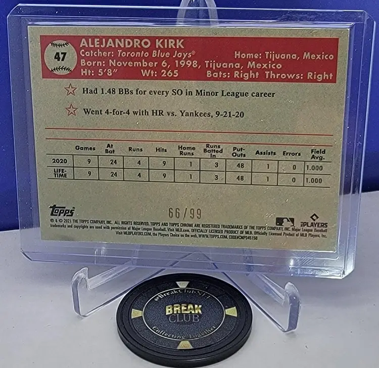 Alejandro Kirk 2021 Topps Chrome Platinum Green Yellow 70th Refractor /99 No. 47 - Toronto Blue Jays