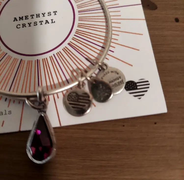 Brand new bangle, amethyst teardrop charm, 3 smaller charms. Made in the USA