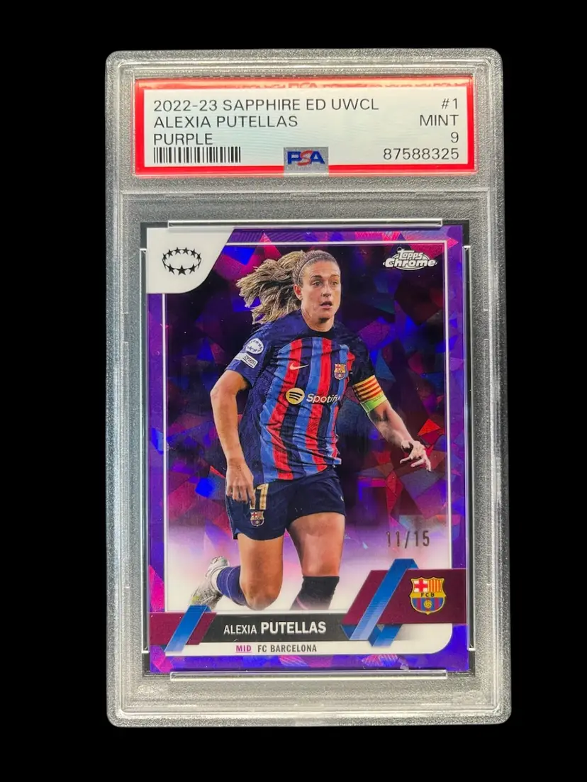Alexia Putellas 2022/23 Topps Chrome UWCL Sapphire Purple 11/15 (Kit Number) PSA 9 Barcelona Soccer Card