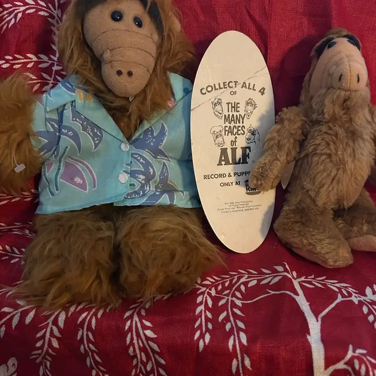 You get both. First one is a hand puppet that came out at Burger King in 1988. Still in good shape. Original Burger King tag fell off, but still have. The other Alf is a plush window cling. Big Alf measures 11 inches & Little Alf measures 8 inches.