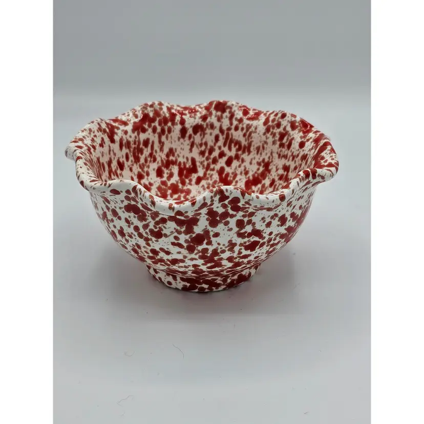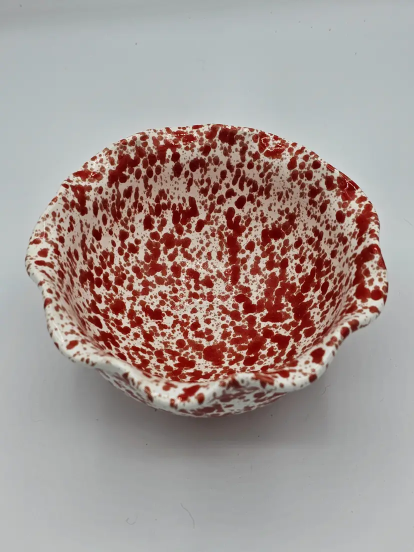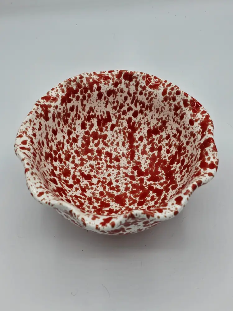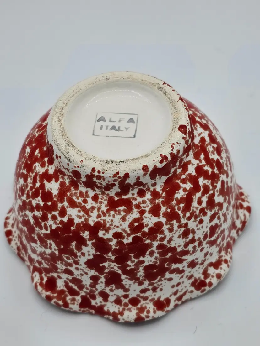 Red Spatter Alfa Pottery Bowl Italy Measures approx 5.5 in circumference & 3 inches tall Nice condition. No damage