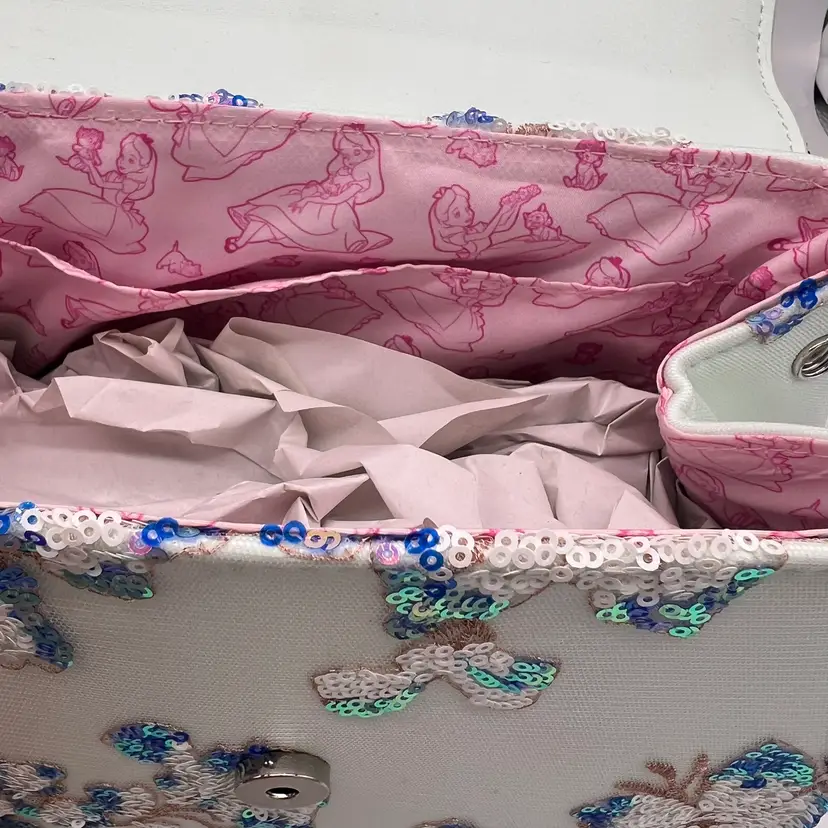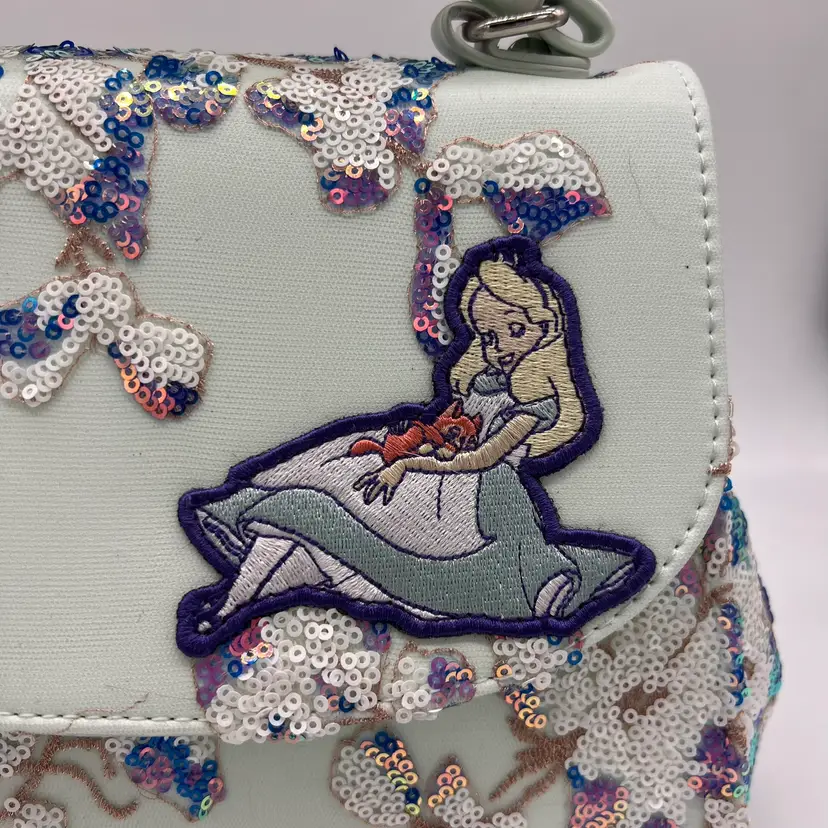 Nap under a tree with Alice and Dinah and fall down a rabbit hole into Wonderland whenever you rock this handbag from Loungefly! Featuring stunning sequin floral decorations, Alice and Dinah appear as an embroidered patch on the front fold over flap of this Alice in Wonderland handbag. Featuring a top handle, removable adjustable strap for easy style switch-ups, an enamel brand bag, and an interior lining pattern of the Disney duo, now you can bring a bit of Wonderland charm to your next look!