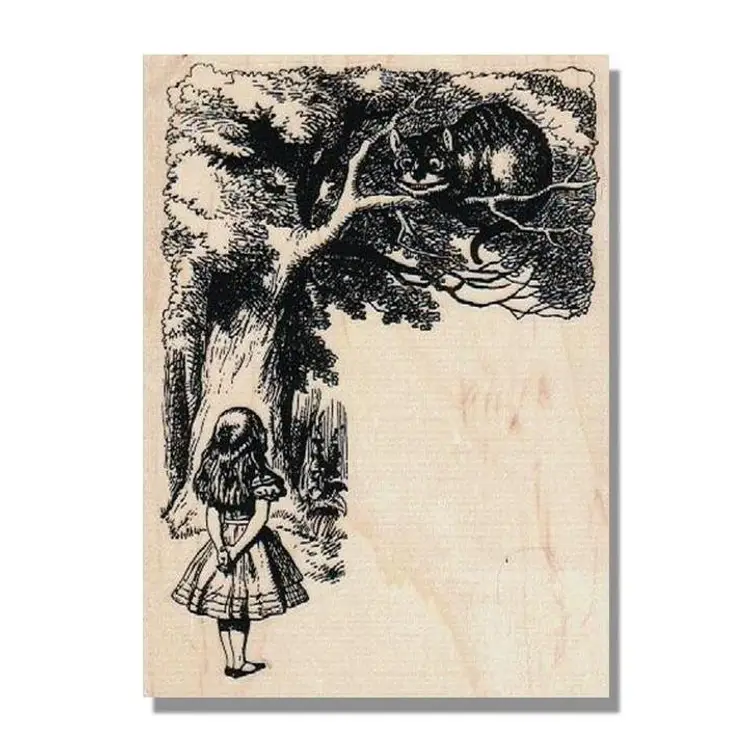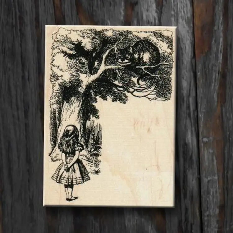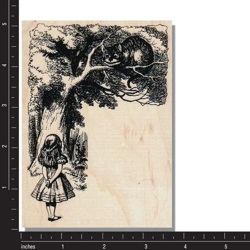 Alice With Cheshire Cat Rubber Stamp Size: 3-3/4 x 5 inches Wood mounted Red Rubber Brand new/unused • Great for scrapbooking, card making, journals, crafts, collage, tags and mixed media projects. • First purchase on District? Use this code for $5 off a $10 min purchase. ALOHAG34