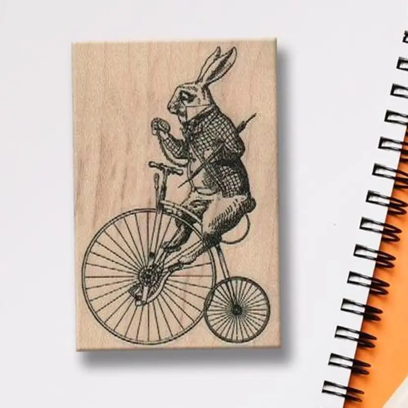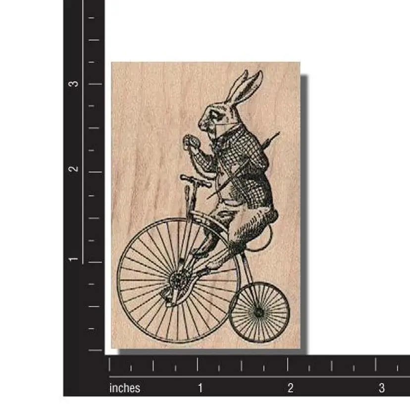 Alice In Wonderland Rabbit On Old Bicycle Rubber Stamp Size 2-1/4 x 3-1/4 inches Red Rubber Brand new/unused • Great for scrapbooking, card making, junk journaling, crafts, collage, tags and mixed media projects. • First purchase on District? Use this code for $5 off a $10 min purchase. ALOHAG34