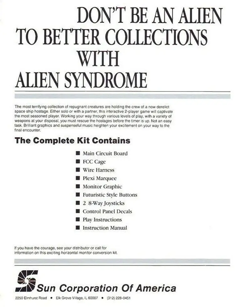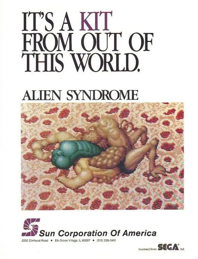 Arcade: Flyer Modified Item: No Country/Region of Manufacture: United States Original/Reproduction: Original Year: 1987 Game Title: Alien Syndrome Brand: SEGA Subject: Aliens Theme: Science Fiction