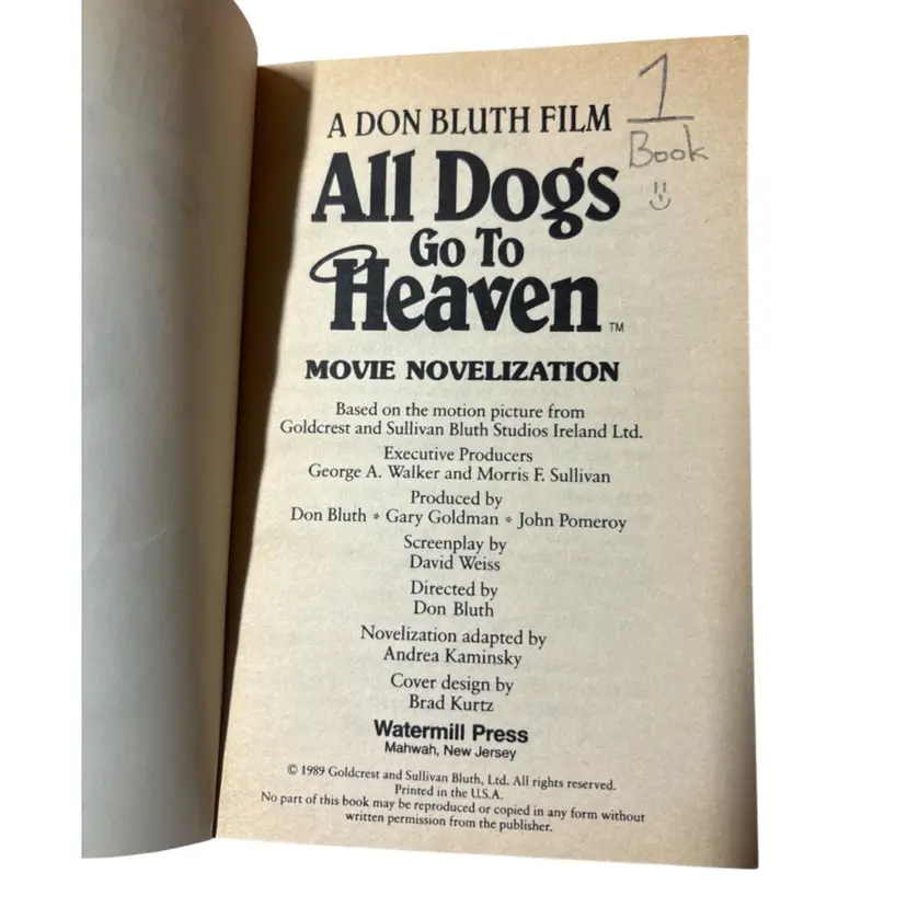All Dogs Go To Heaven Movie Novelization Vintage Children’s Book 1989