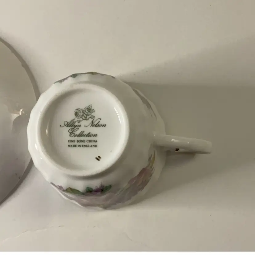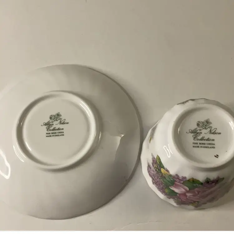 Regular size cup 4 1/2” diameter and handle Saucer 6” Rose snd lilacs