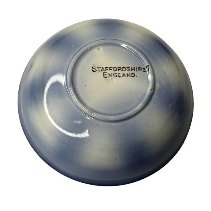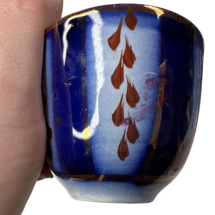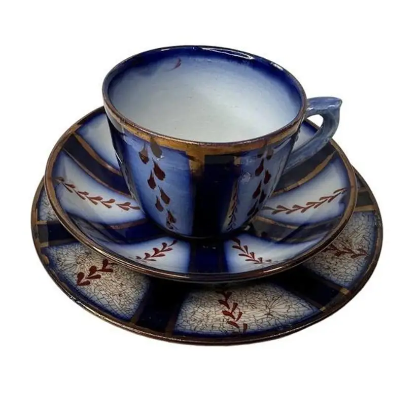 Allerton Childs Gaudy Flow Blue Wagon Wheel Staffordshire Tea Cup 3 piece C 1870