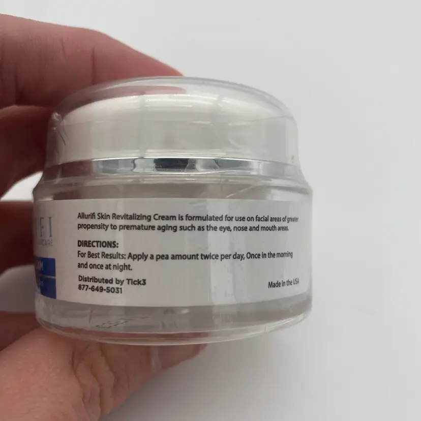 You are purchasing one 1oz or 30 ml Jar of Skin Revitalizing Cream by Allurifi Advanced Skincare. This cream is new and sealed in its original packaging.