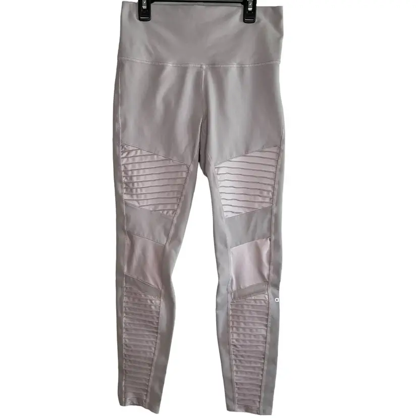Alo Womens Size Large Moto Yoga Leggings Pants Light Purple High Waist Mesh Va-Va-Vroom