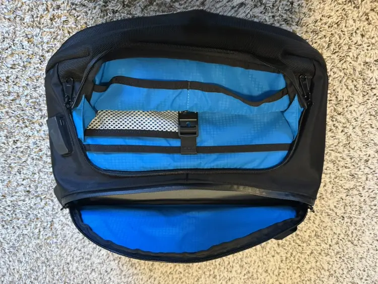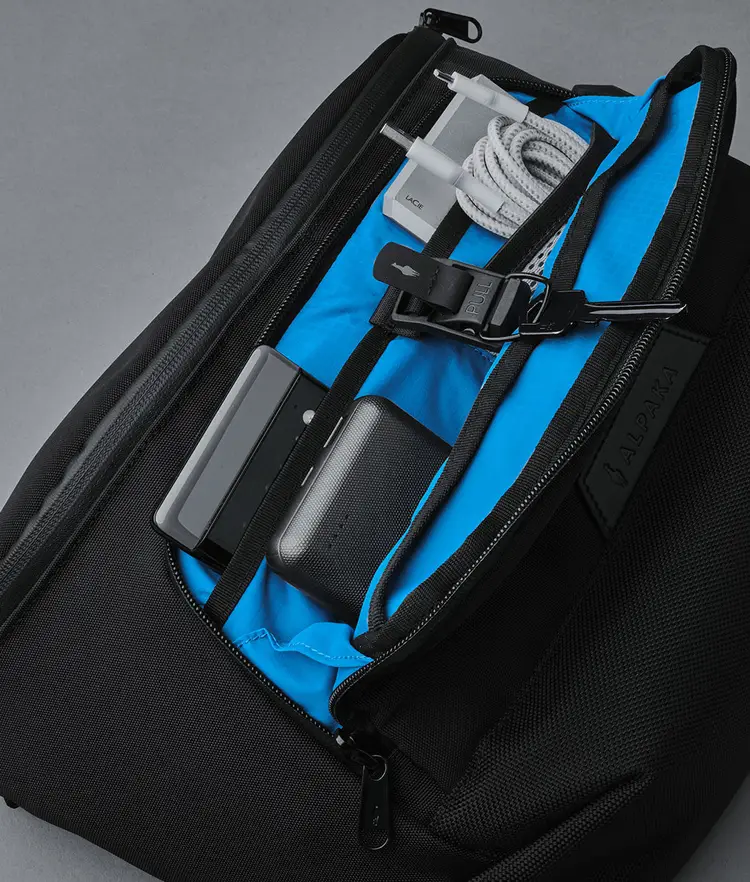Organized Compartments: Multiple compartments, including a front tech panel with five pockets, help keep your cables, accessories, and essentials neatly organized.โ