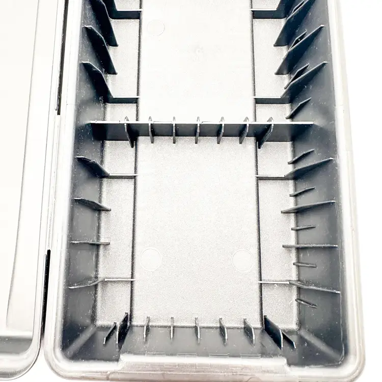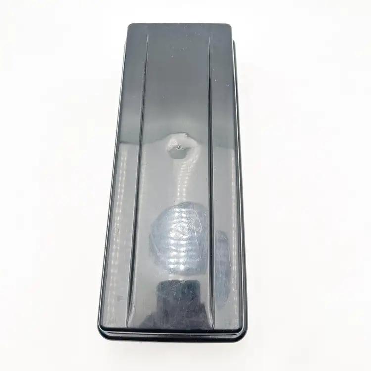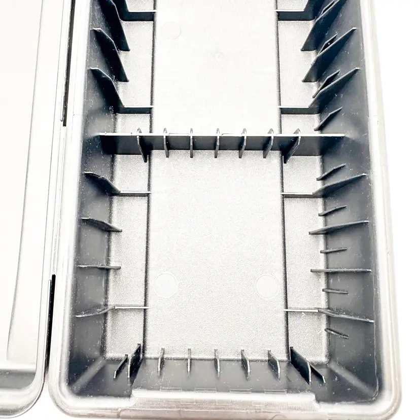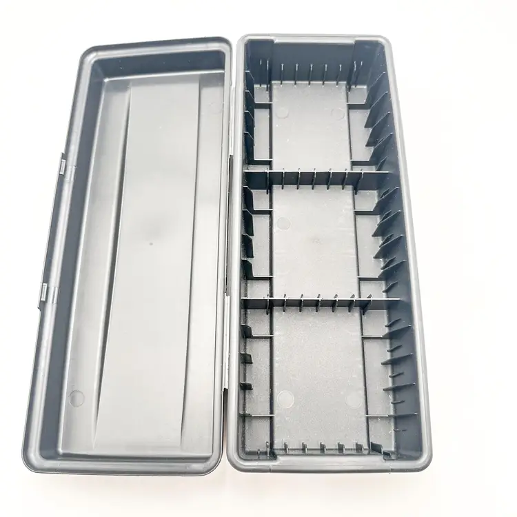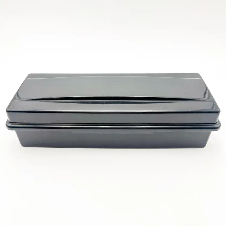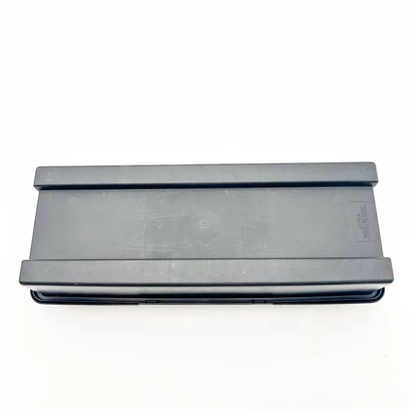 Black plastic storage box for cassette tapes by ALPHA Compartments for cased and loose cassettes Very good condition, some surface wear, see all photos Approximately 14" L x 5'5" W x 3.5" H