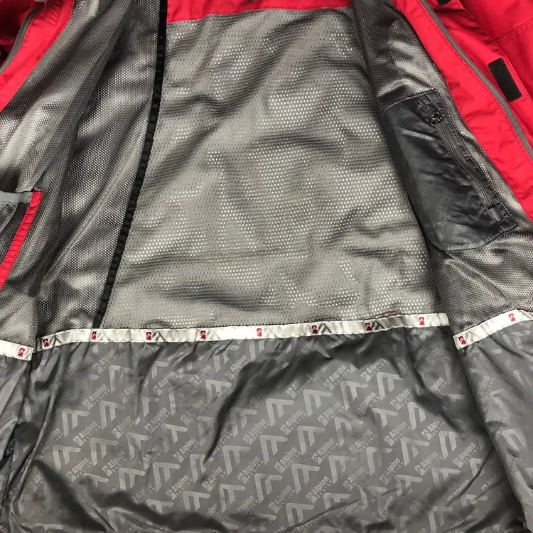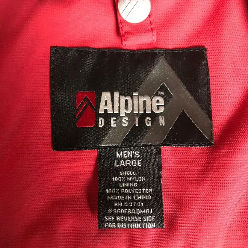 Outer Shell Material: Nylon Pattern: Solid Jacket/Coat Length: Mid-Length Closure: Snap, Zip, Hook And Loop Occasion: Casual, sport, work Size: L Garment Care: Machine Washable Lining Material: Nylon Color: Red/Gray Fabric Type: ripstop nylon Brand: Alpine Design Insulation Material: Polyester Size Type: Regular Department: Men Type: Jacket Theme: Designer Style: Parka Features: Hooded Season: Winter, Fall Performance/Activity: Skiing
