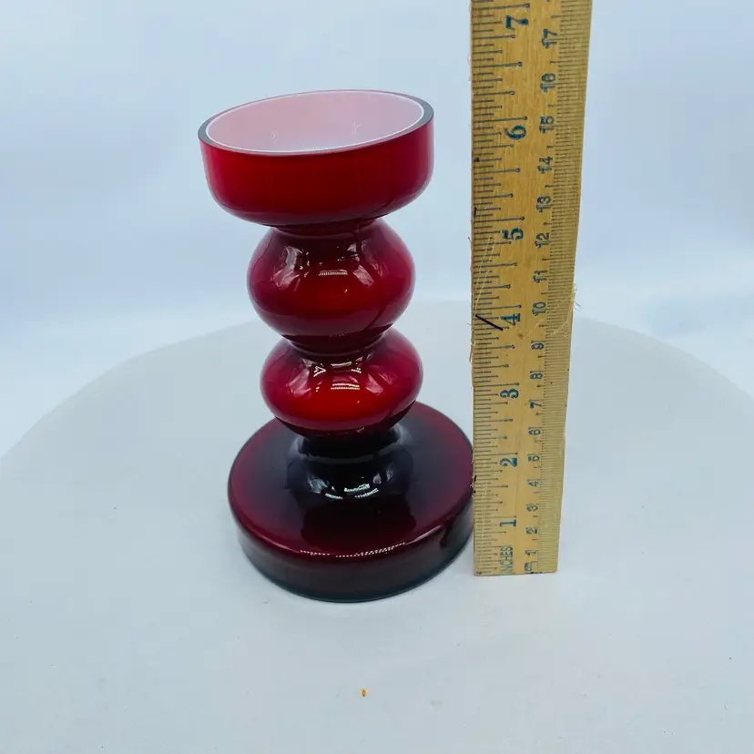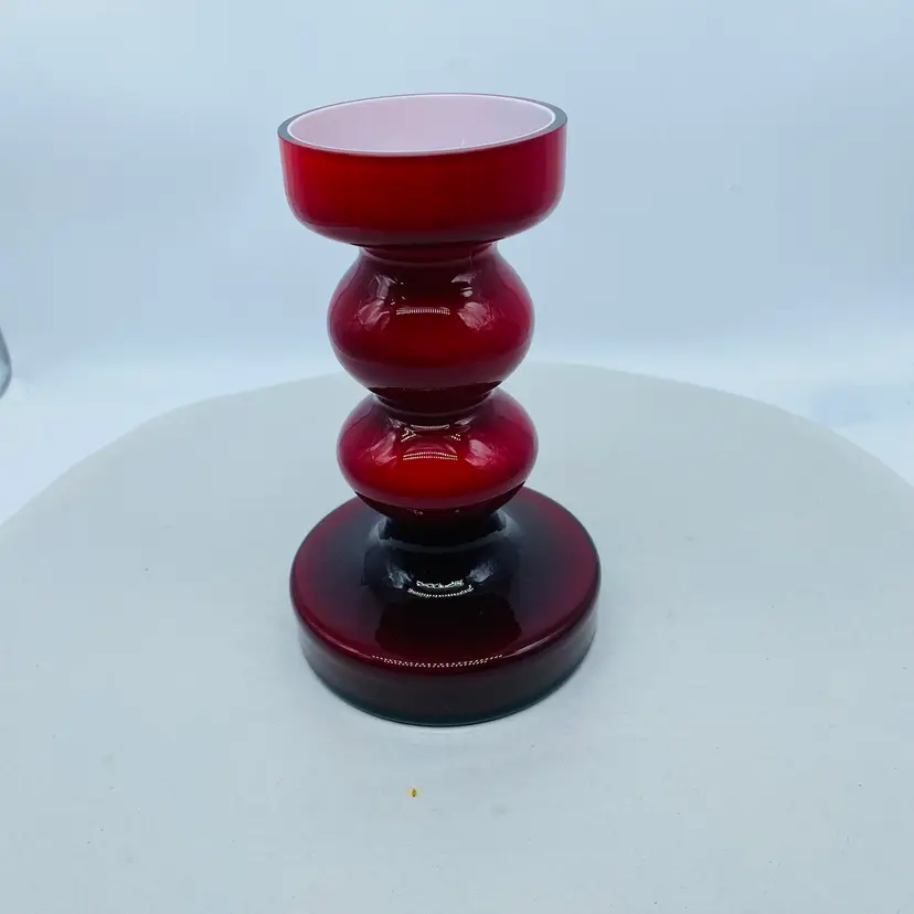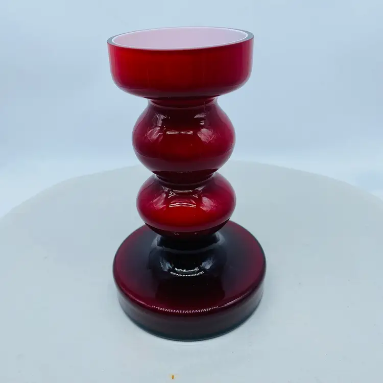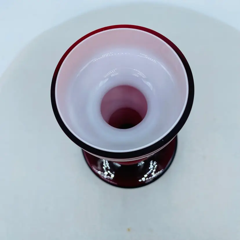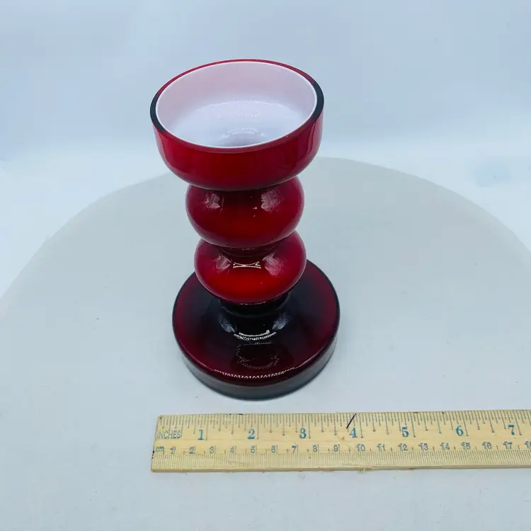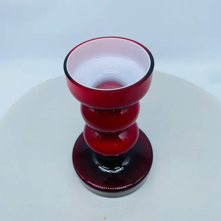 An red and white Swedish cased glass hooped vase. Made by Alsterfors, designed by Per Olof Strom,