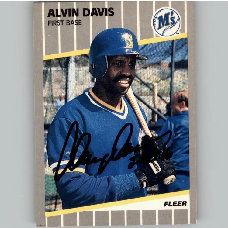 Authentic Fleer baseball card featuring Alvin Davis of the Seattle Mariners, adorned with his signature in black Sharpie. A prized collectible for Mariners fans and autograph card collectors. Your purchase supports Signatures For Soldiers in helping homeless and disabled veterans.