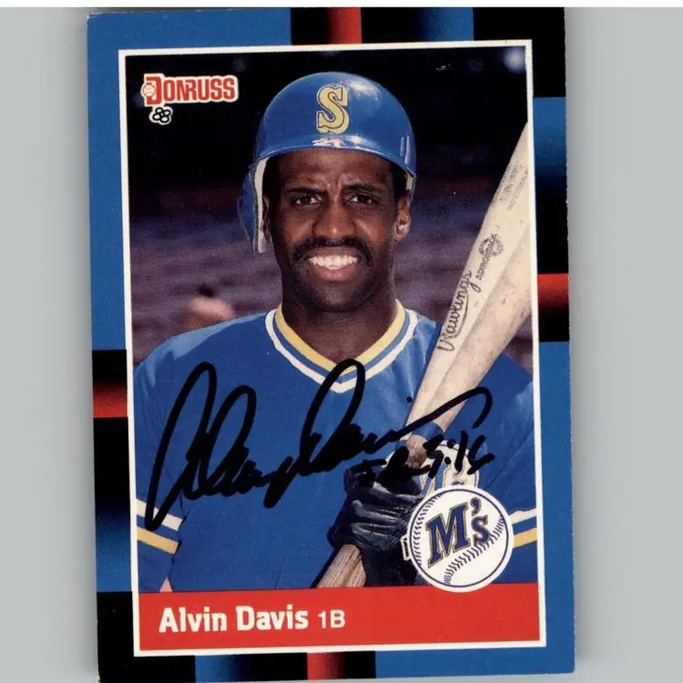 Authentic 1988 Donruss baseball card featuring Alvin Davis of the Seattle Mariners, adorned with his signature in black Sharpie. A prized collectible for Mariners fans and autograph card enthusiasts. Your purchase supports Signatures For Soldiers in helping homeless and disabled veterans.