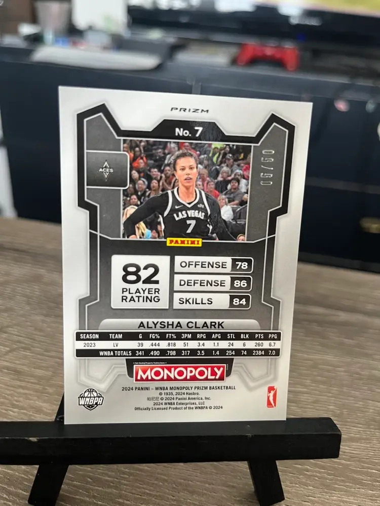 Alysha Clark 2024 Panini Prizm WNBA Monopoly Purple Millionaire Shimmer /50 Basketball Card Las Vegas Aces (B)