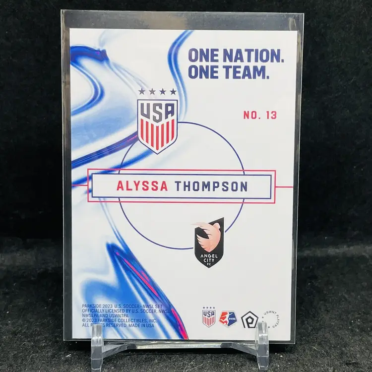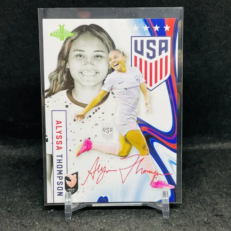 1st time buyer? Get $5 Off with code DISTRICT5 at checkout! Card as shown. All cards $20 and under ship PWE via lettertrackpro [https://www.letter-track.com/registerap.asp?AFID=8757] – Card Size: Standard – Autographed: No – Product: Single – Year Manufactured: 2023 – Player/Athlete: Alyssa Thompson – Type: Sports Trading Card – Sport: Soccer – Parallel/Variety: Limited – Manufacturer: Parkside – Features: Rookie – Team: Angel City FC, USWNT – Card Number: 13 – Season: 2023 – Country/Region of Manufacture: United States