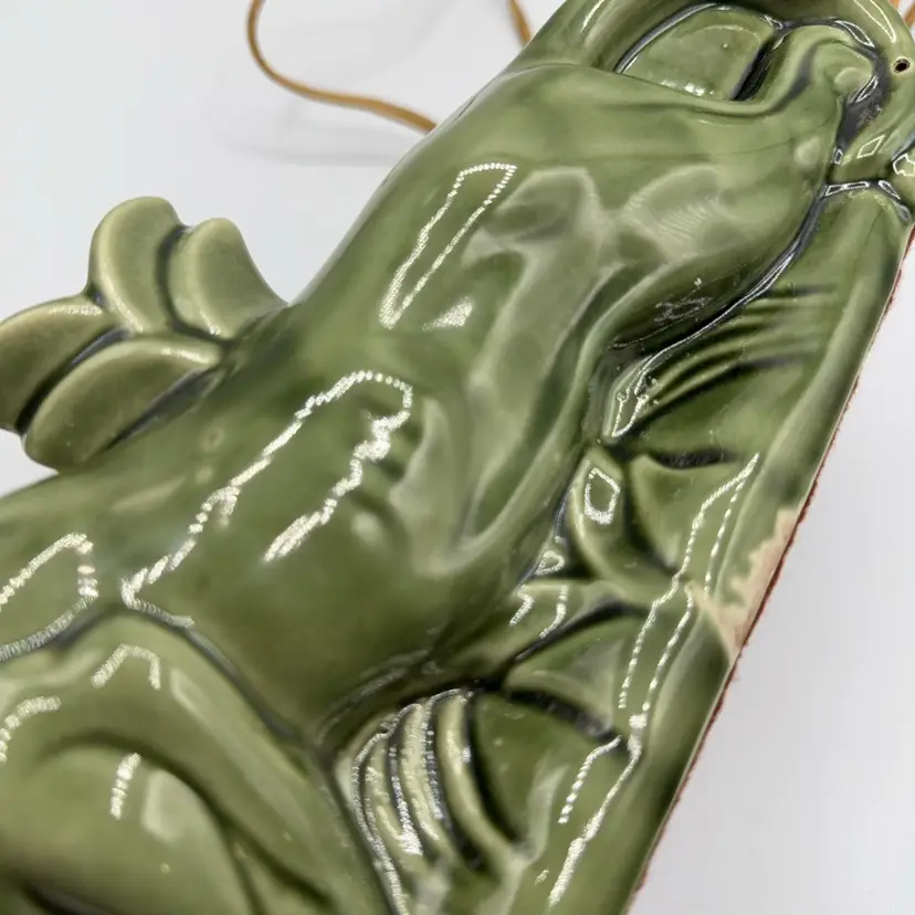 5” x 11” excellent condition. Some areas of glaze slip but no chips or cracks. Does work but I wouldn’t trust this cord.