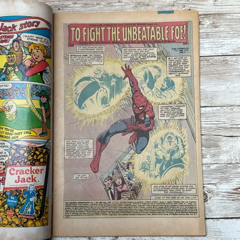 This is The Amazing Spider-Man #230, published by Marvel Comics in July 1982. It features the conclusion of the epic two-part Juggernaut vs. Spider-Man battle, one of the most iconic fights in Spider-Man history. This issue continues the classic “Nothing Can Stop the Juggernaut” storyline.