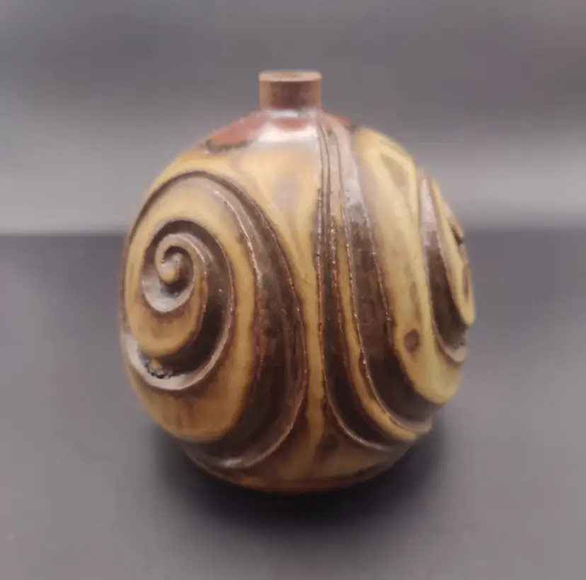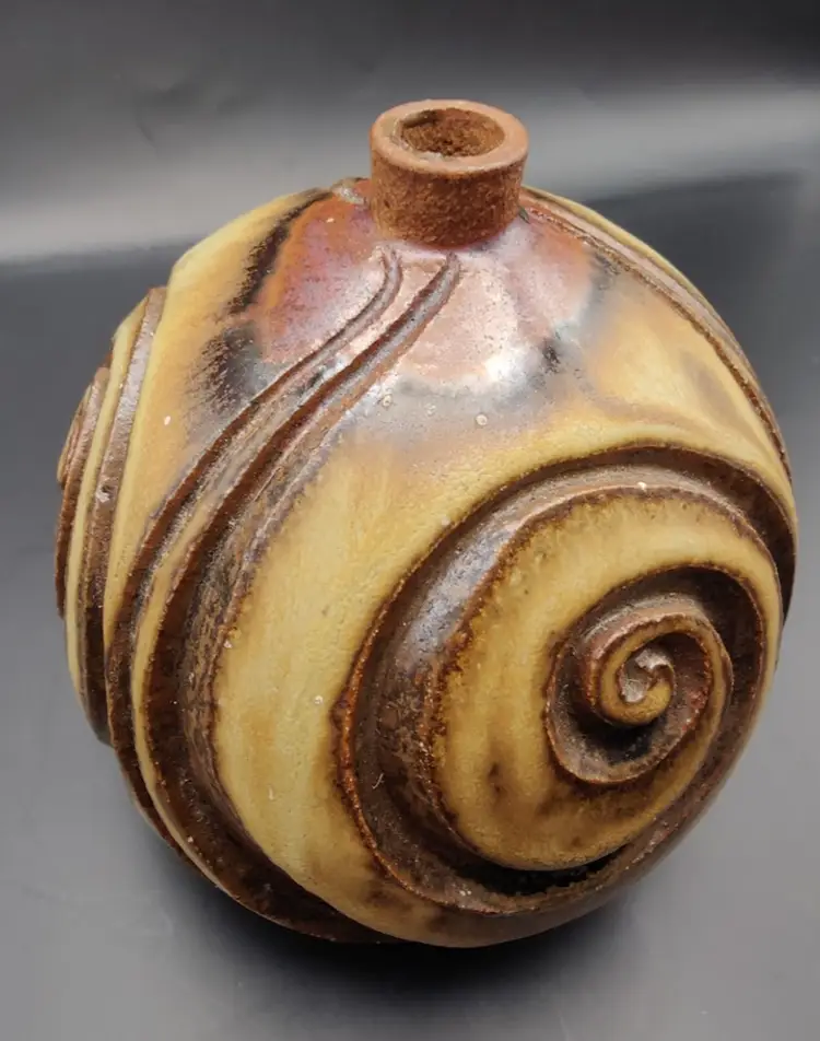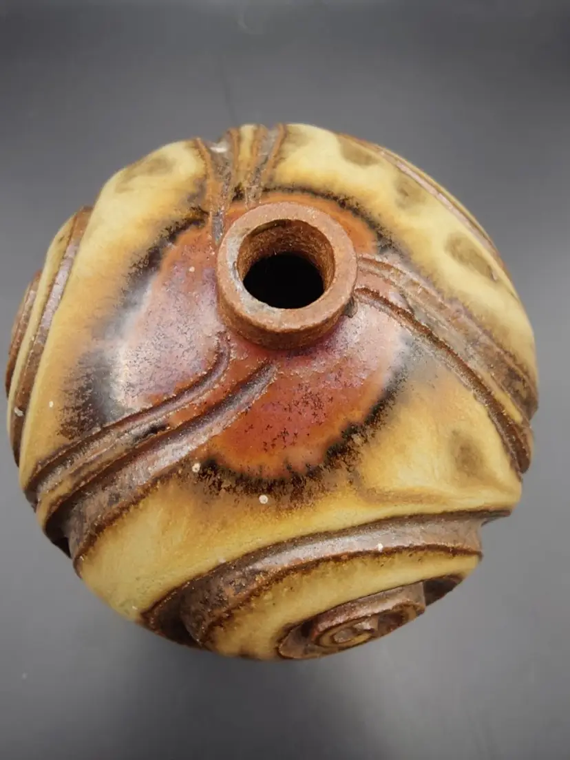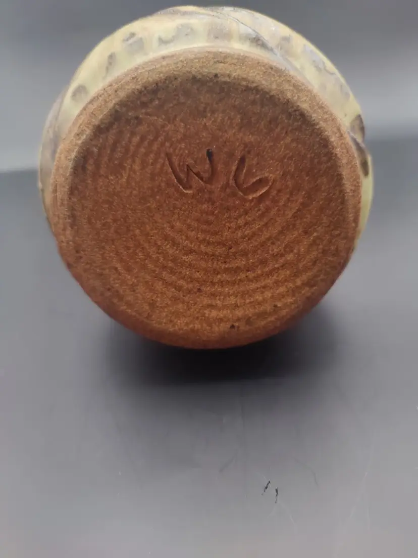 This piece is so unique. Signed WL or WU on bottom. No chips or cracks. Truly a beautiful piece of pottery