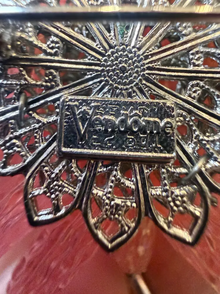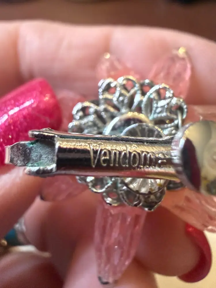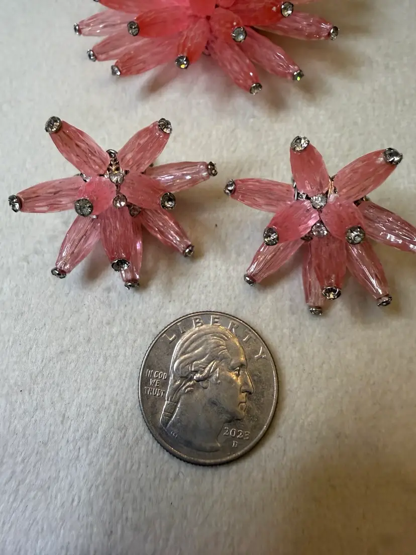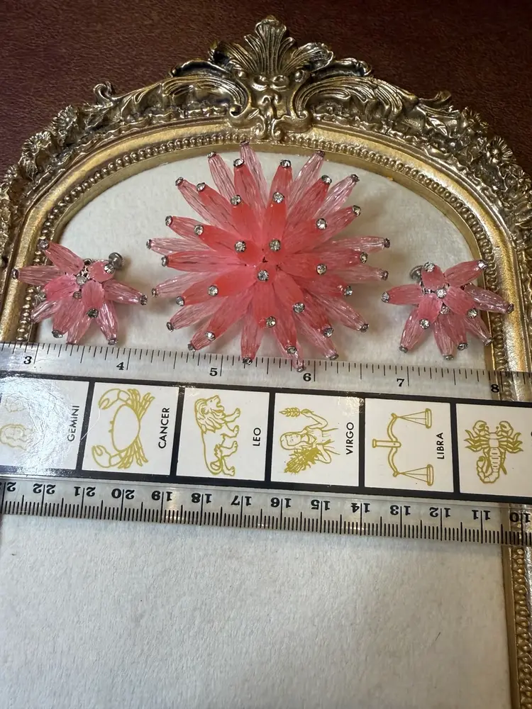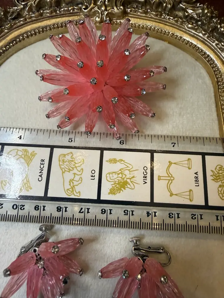 VENDOME SILVERTONE 1960’S RHINESTONE PINK SPUTNIK ATOMIC BROOCH AND CLIP ON EARRINGS AMAZING CONDITION