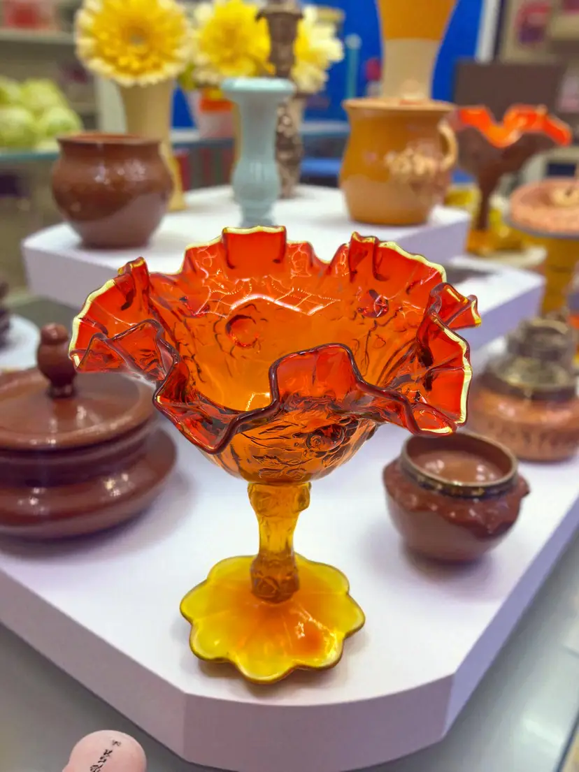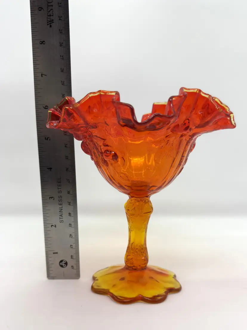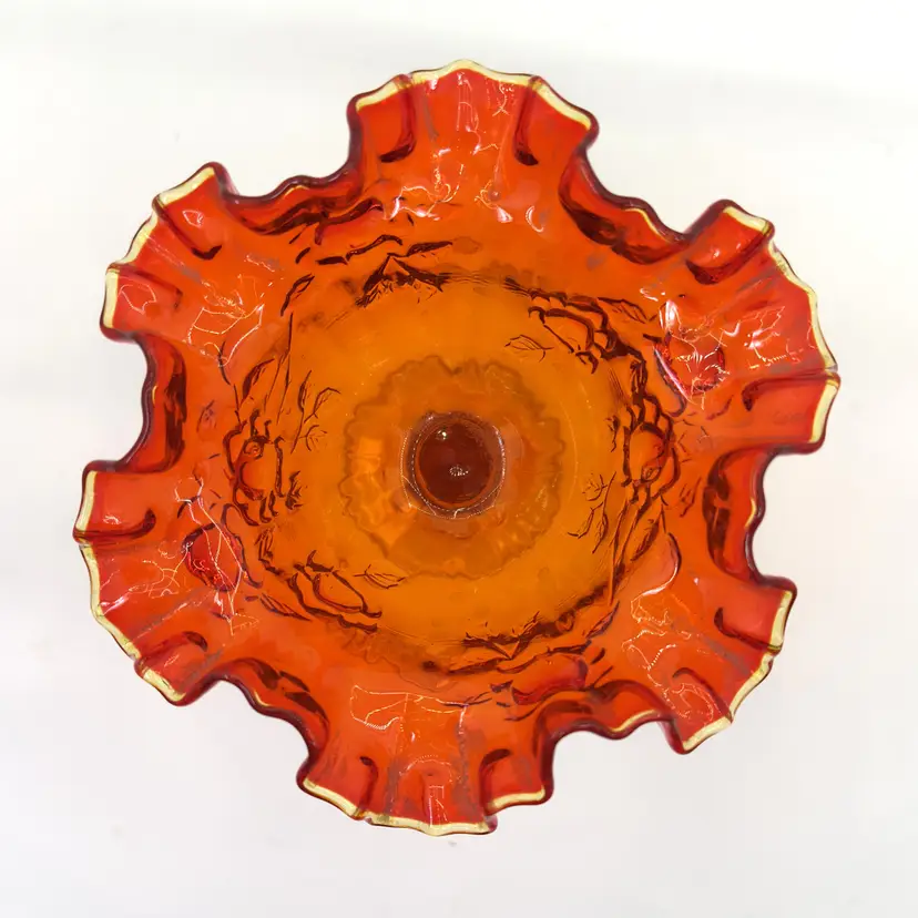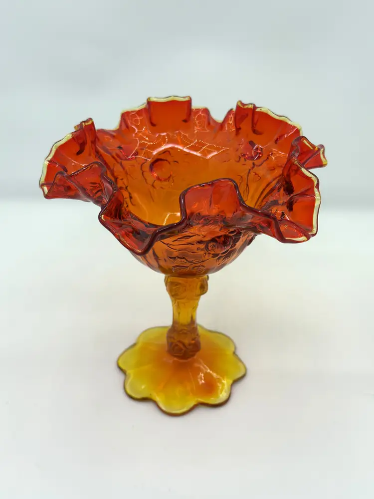 Brilliant Amberina glow meets mid-century artistry—this Fenton compote adds warmth, color, and collectible beauty to any space.
