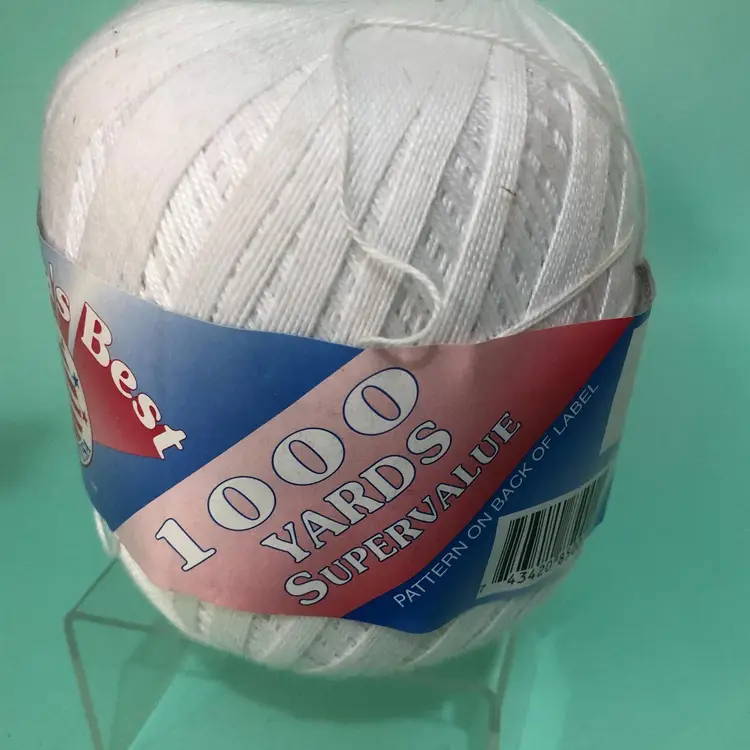 Bedspread Weight. 1000 yds. Polyester. All yarn in the show is free from smells.
