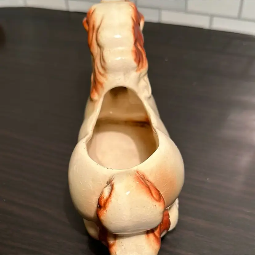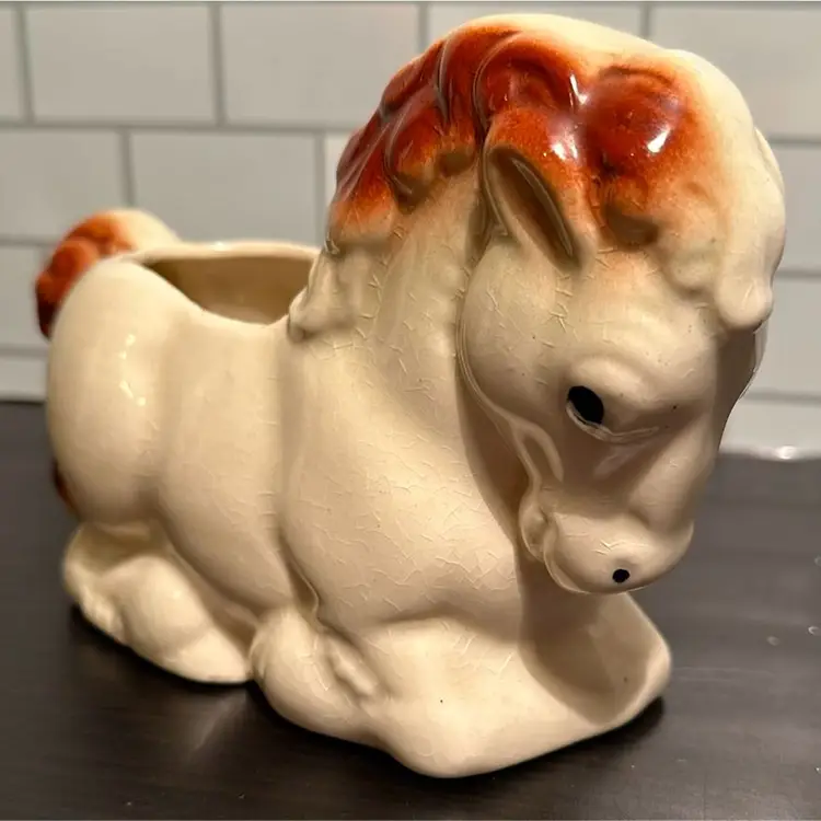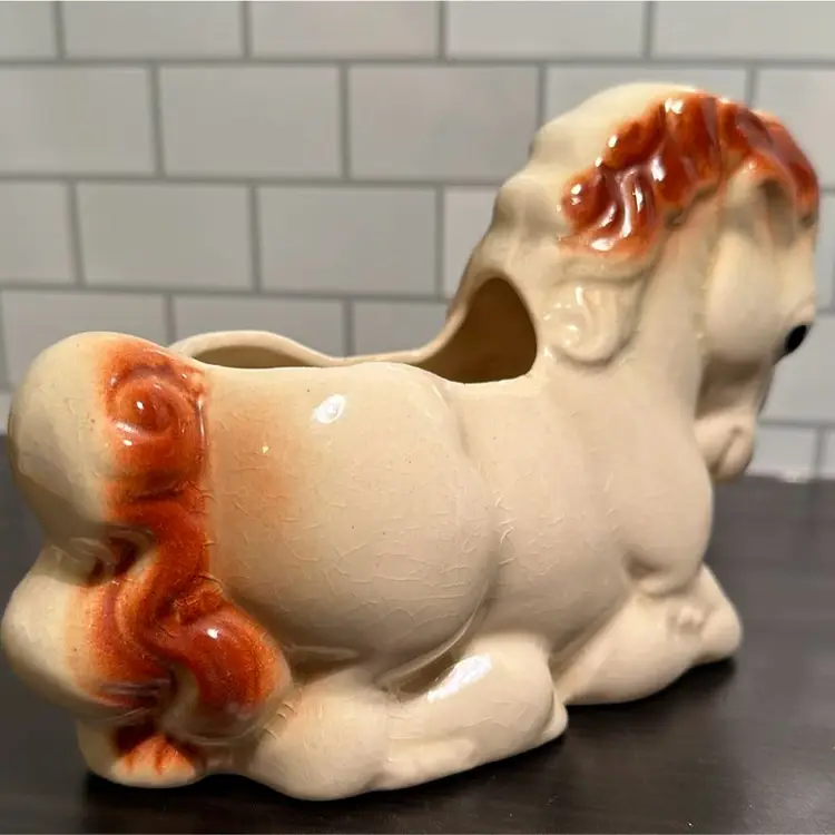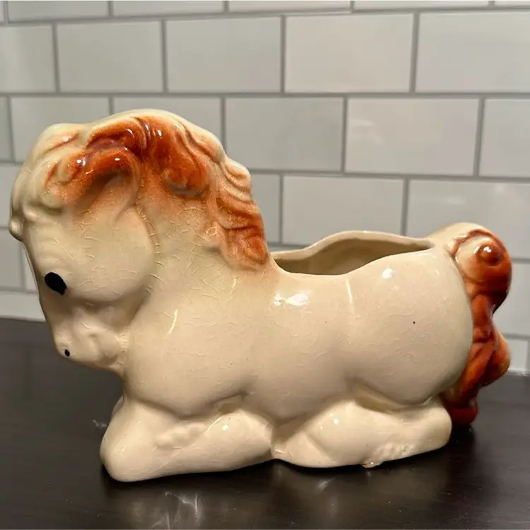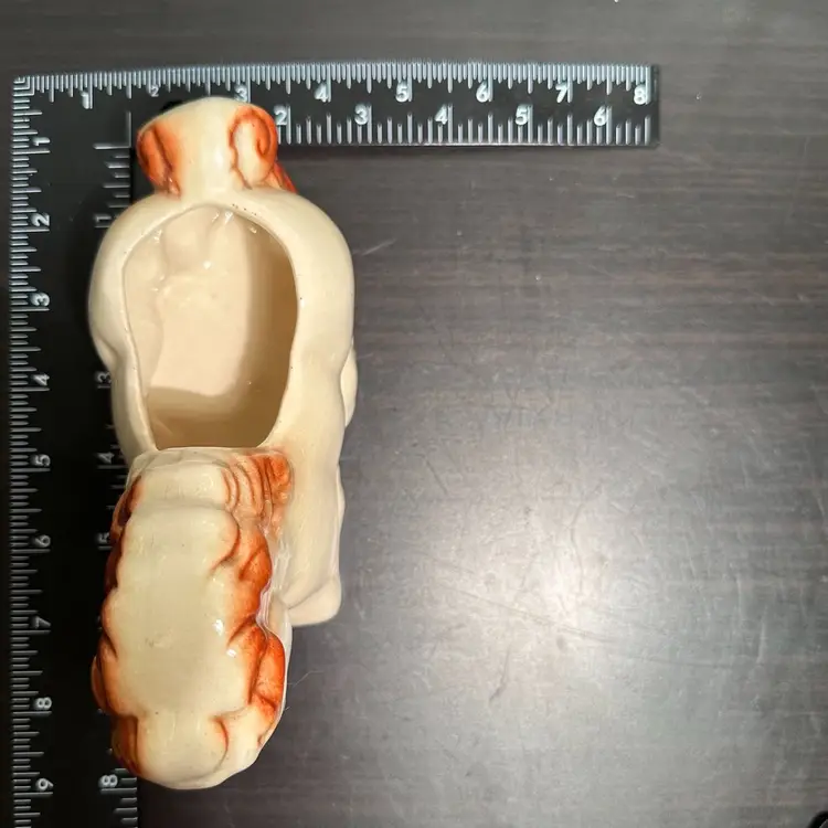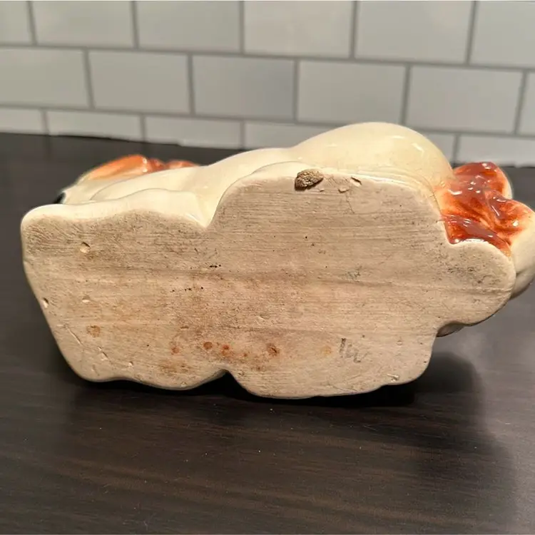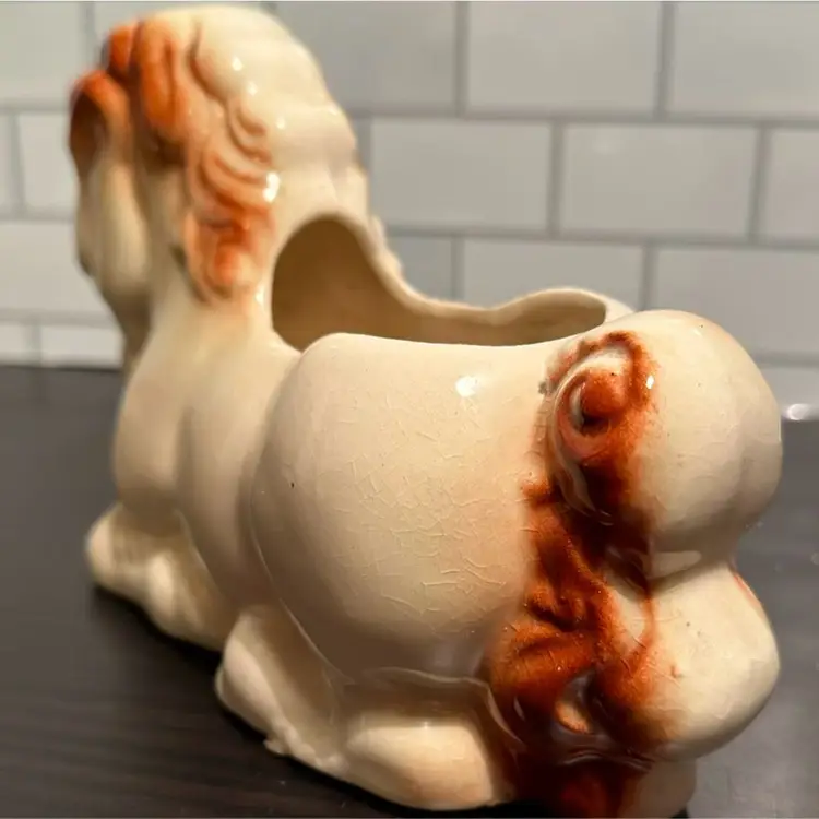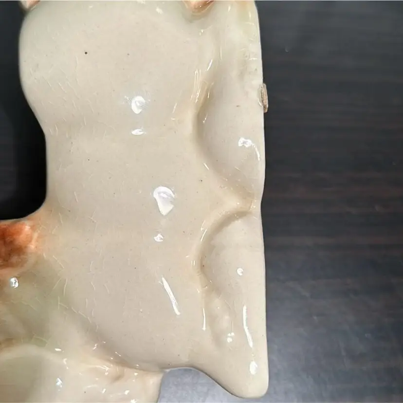 There is quite a bit of crazing and what appears to be an over glaze or piece of clay that stuck to the back leg during glazing. Please look at last two pictures for measurements.