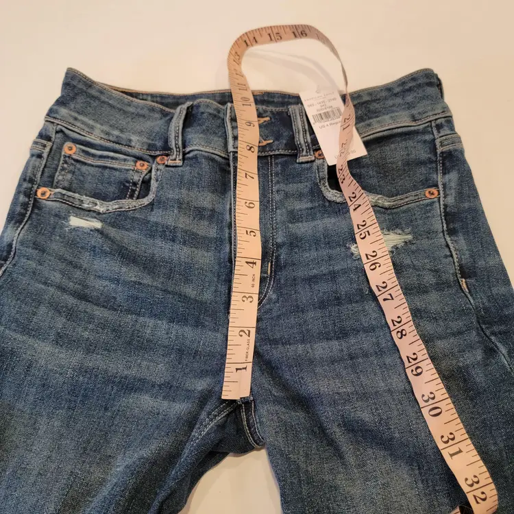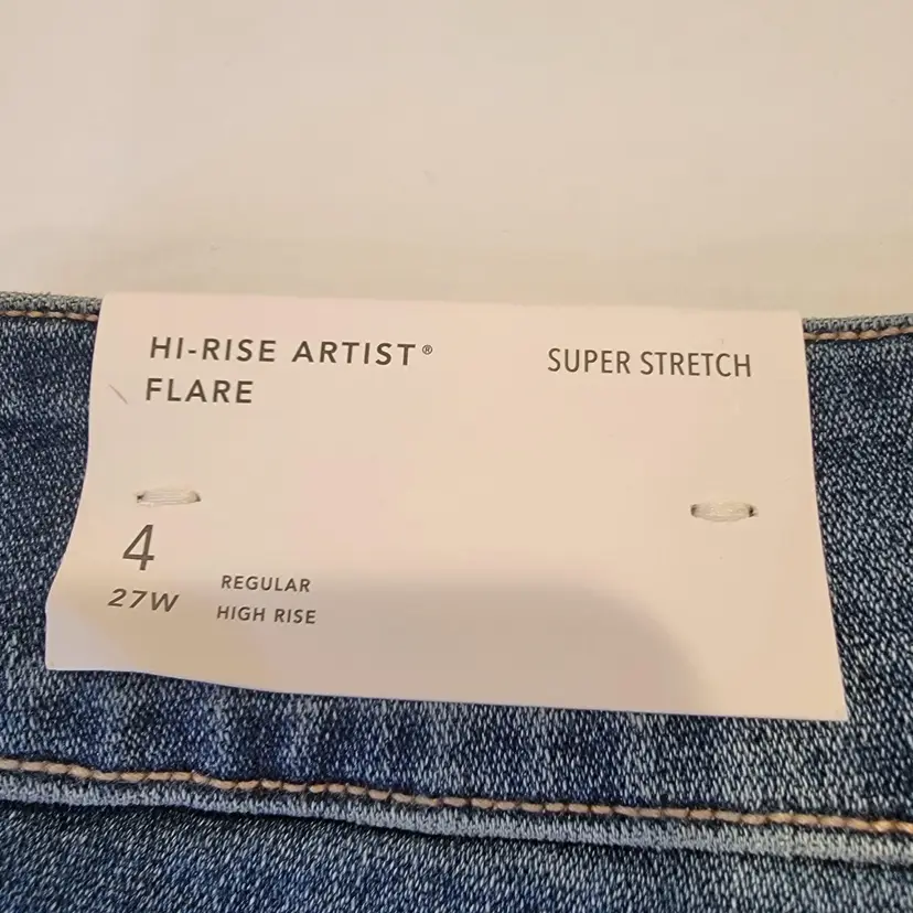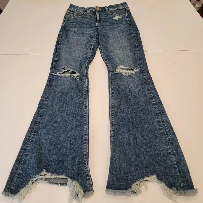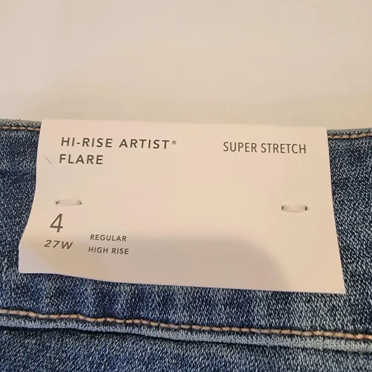 American Eagle Hi-Rise Artist Flare Distressed Jeans Size 4/27 Regular NWT! Super Stretch Cloudy Sky Destroy Colorway Medium Wash Raw Hem #Flare #Distressed #hirise