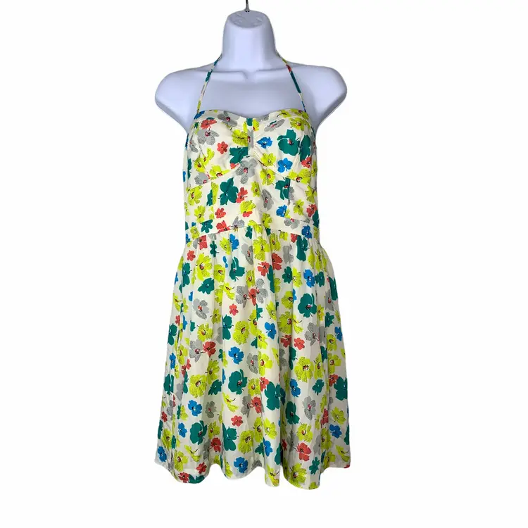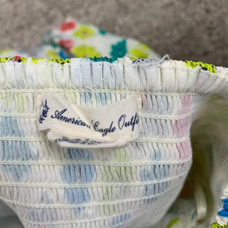 American Eagle Floral Summer Dress Size 8. Adorable yellow summer dress with pockets, thin straps that cross and tie on the back. The backside of this dress is smocked and the dress is fully lined. Pre-owned excellent condition. Yellow and floral Casual, short dress Polyester 15.5 in across bust flat 26 in long from bust to hem