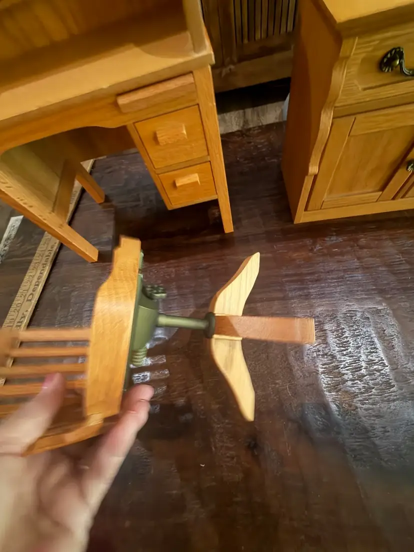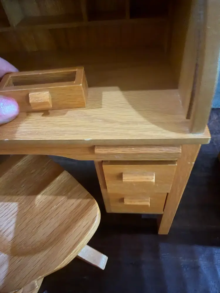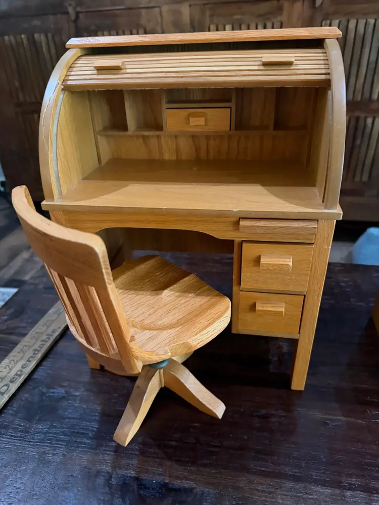 It is in great shape. Chair swivels. Desk drawers work. Well taken care of. Heavy piece of furniture for American girl dolls. It was introduced in 2000 to the American girl lineup.