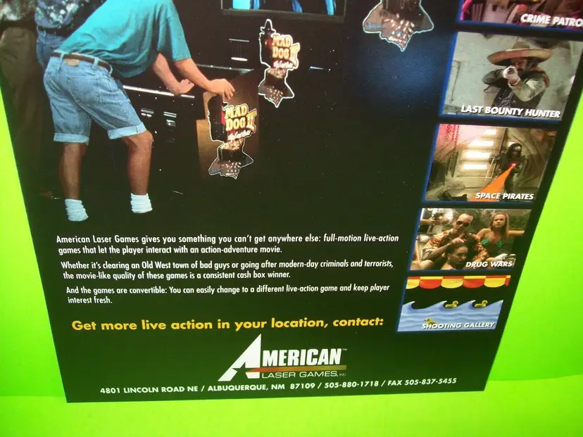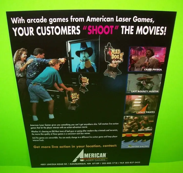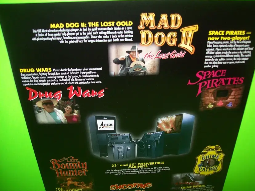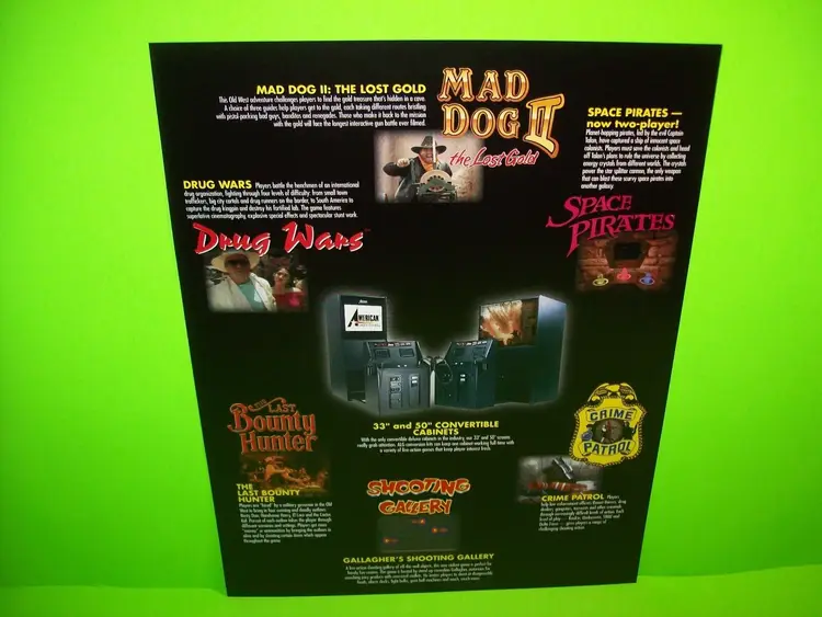 American Laser Games Mad Dog II Lost Gold Space Pirates Gallaghers Gallery FLYER
