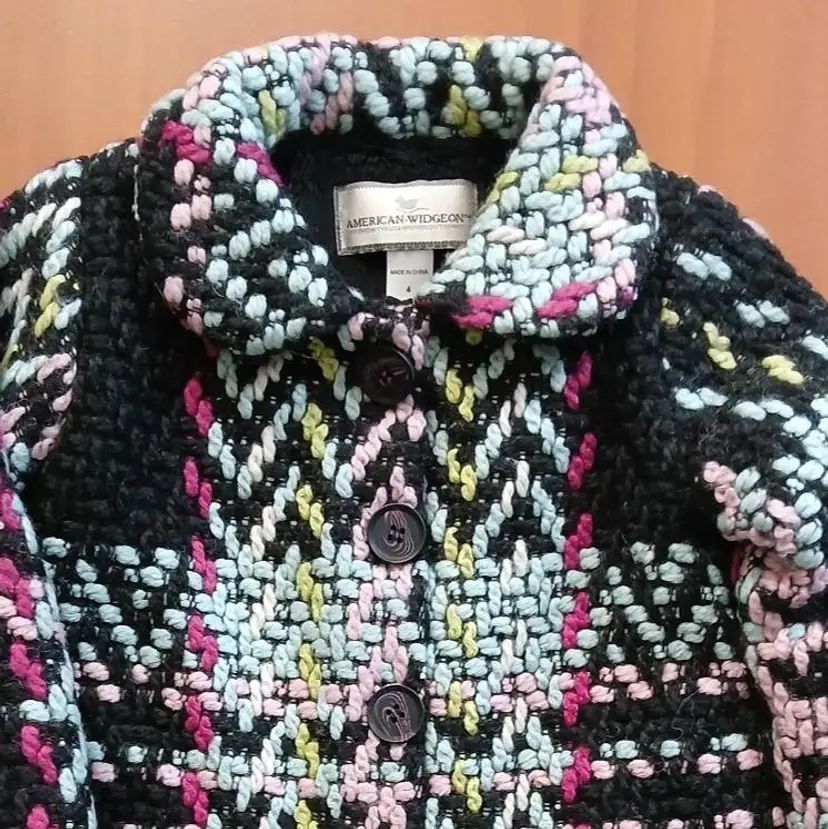 Wool, acrylic, polyester / dry clean suggested or see care label