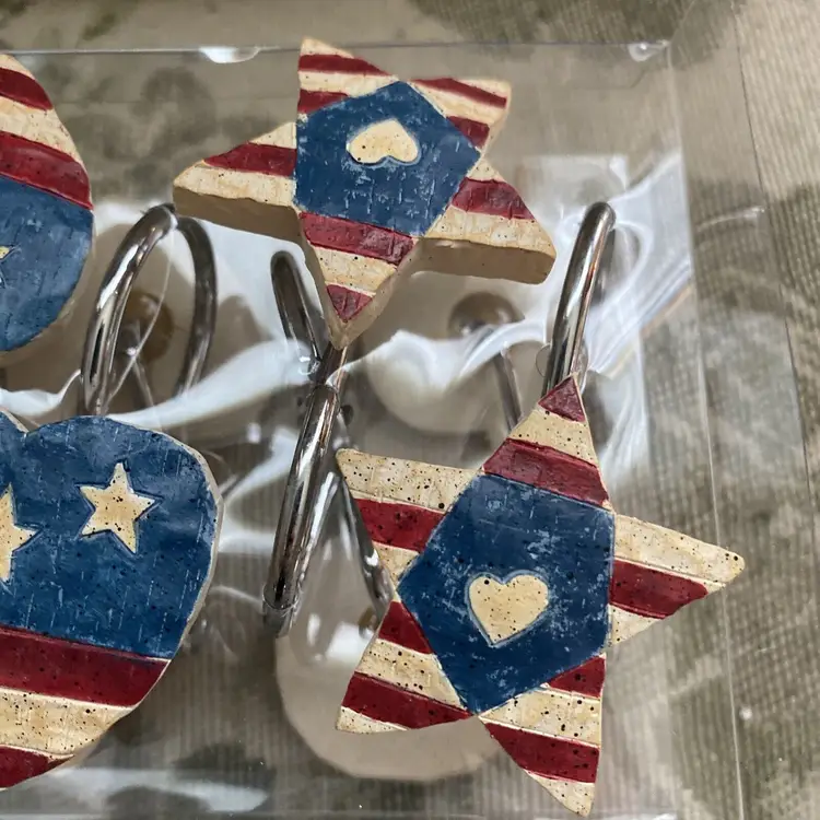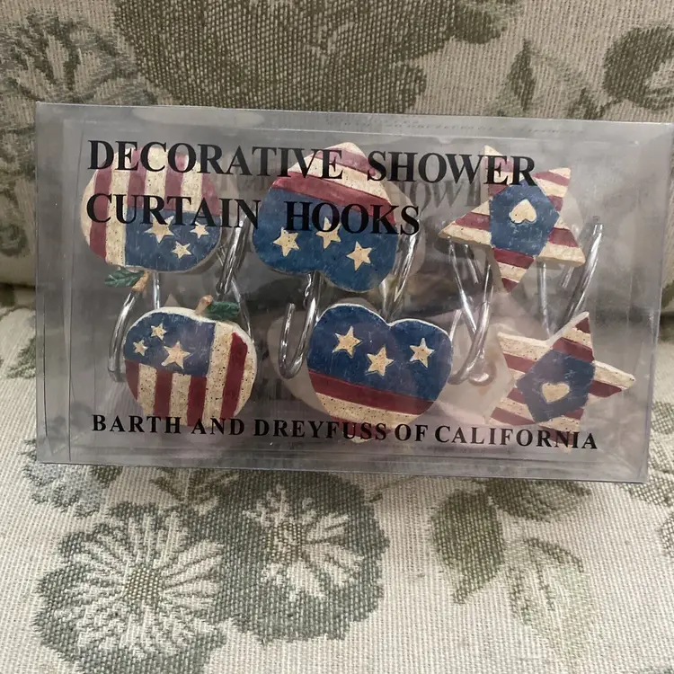 Brand: Barth & Dreyfus Type: Shower Curtain Hooks Color: Blue Red Number in Pack: 12 Material: Metal, Resin Set Includes: Hooks Finish: Brushed Room: Bathroom Suitable For: Shower