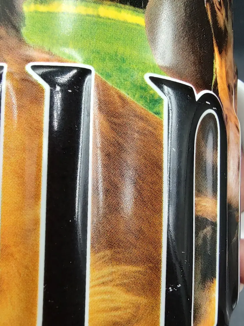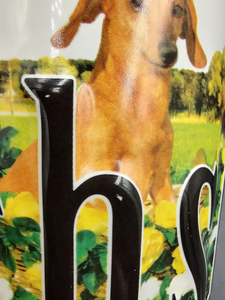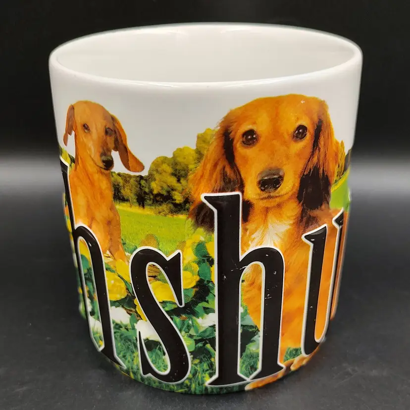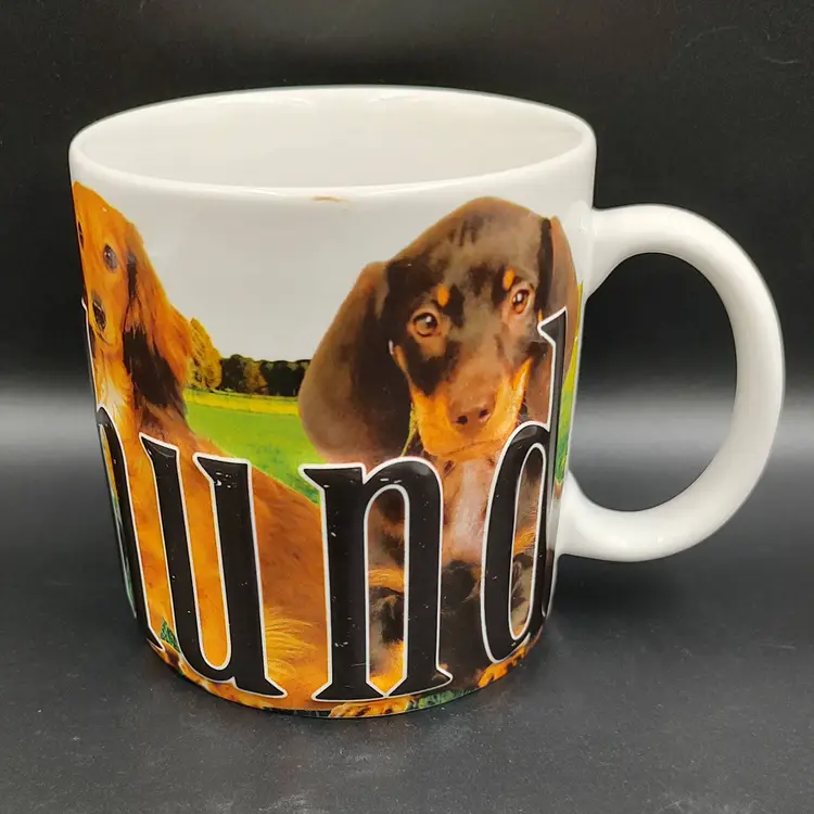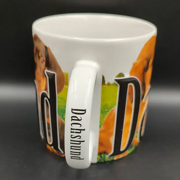 2011 Americaware Ceramic 3D Dachshund Coffee Mug. Height 4" x diameter 4" holds 16 ounces. Has wear as shown in pictures. Made in Thailand