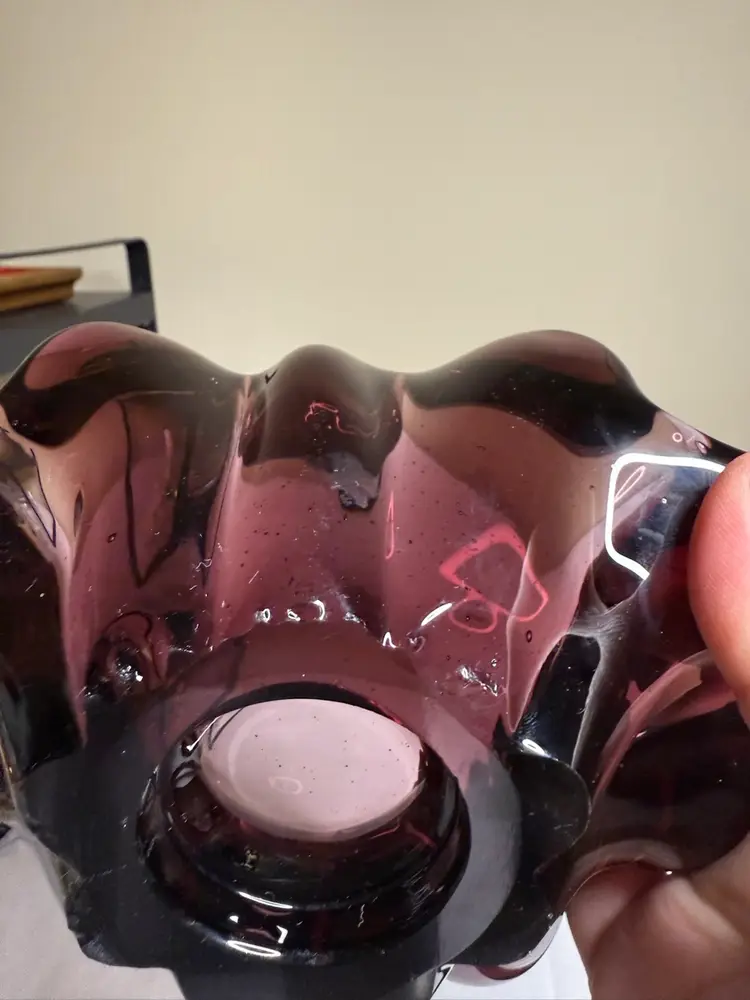 Stunning amethyst dish that could be used as an ashtray, candy, or trinket dish. Glows with 365 UV Light.