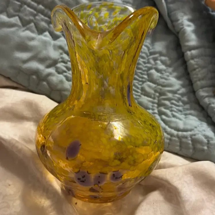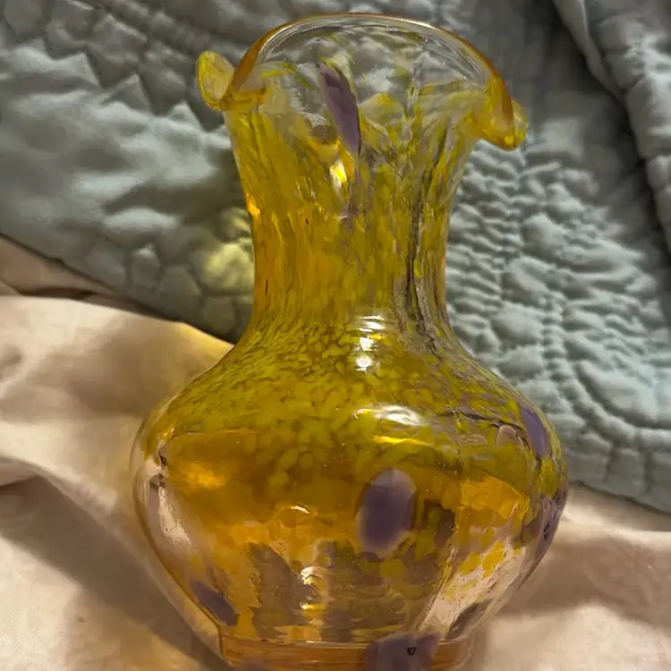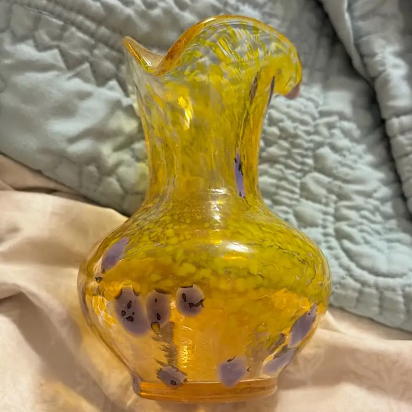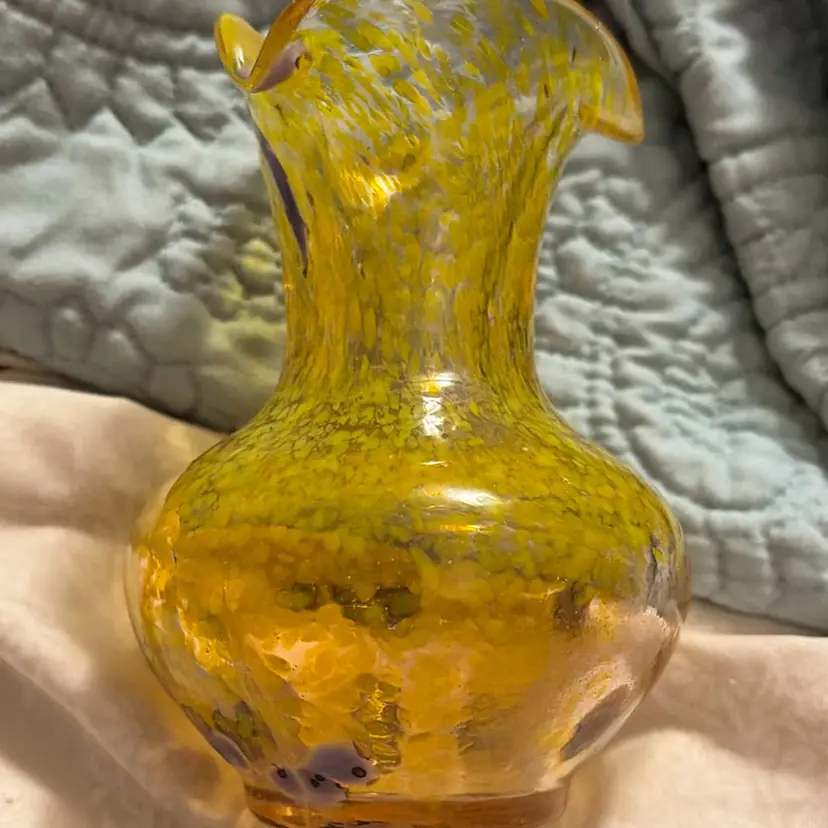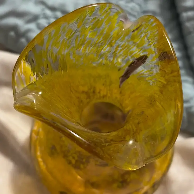 Crackle glass vase about 5 inches tall fluted no chips or cracks in great condition yellow