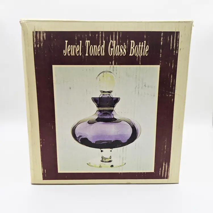 Amethyst Violet Iridescent Perfume Decanter Genie Bottle with Box Art Glass Vintage