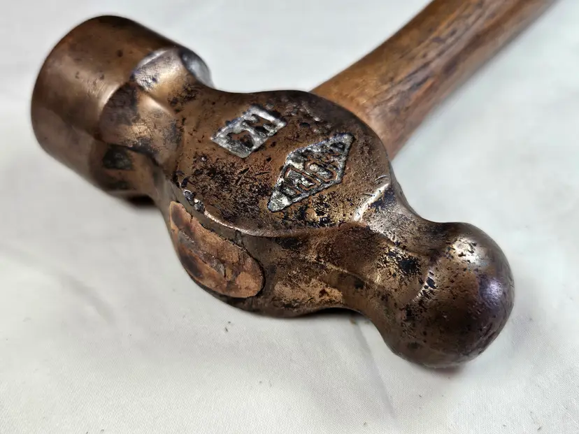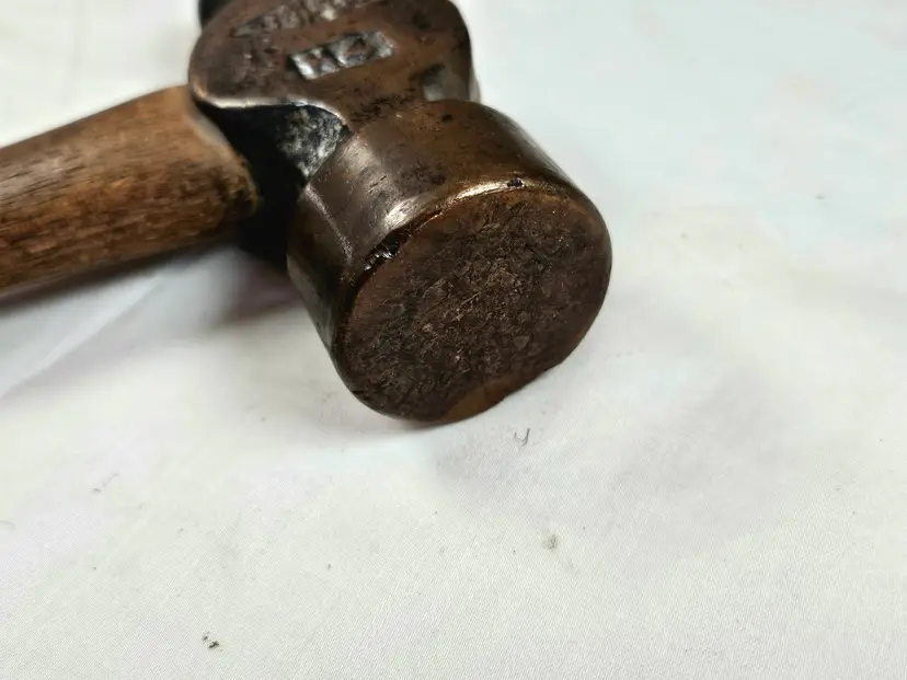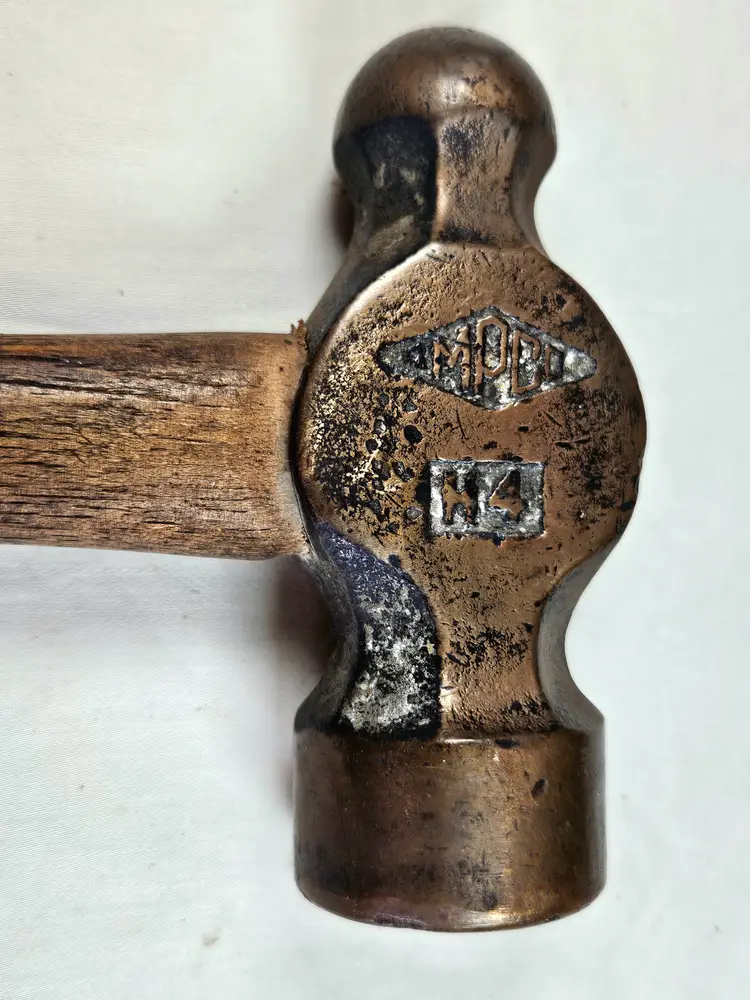 A vintage Ampco H-4 ball pein hammer weighing in at 32oz, it features a non-sparking, non-magnetic bronze alloy head, making it ideal for use in hazardous environments where flammable gases, liquids, or dust may be present.