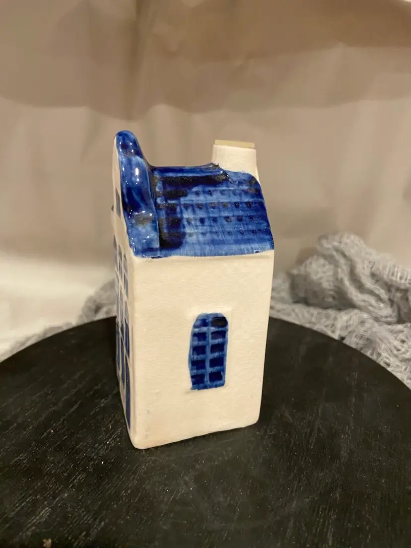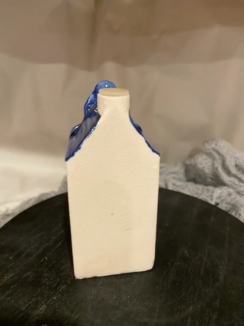 This KLM miniature house looks like a delft holland house but there are no markings so I am labeling it generic blue and white bottle. It is empty which, good thing because I understand the original contents are magical potions of some sort. Anyway, it’s a wee cutie at 4.5” tall and about 2” wide.