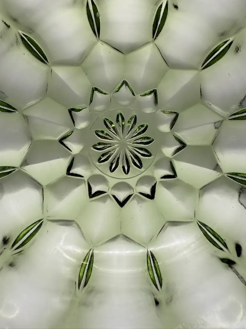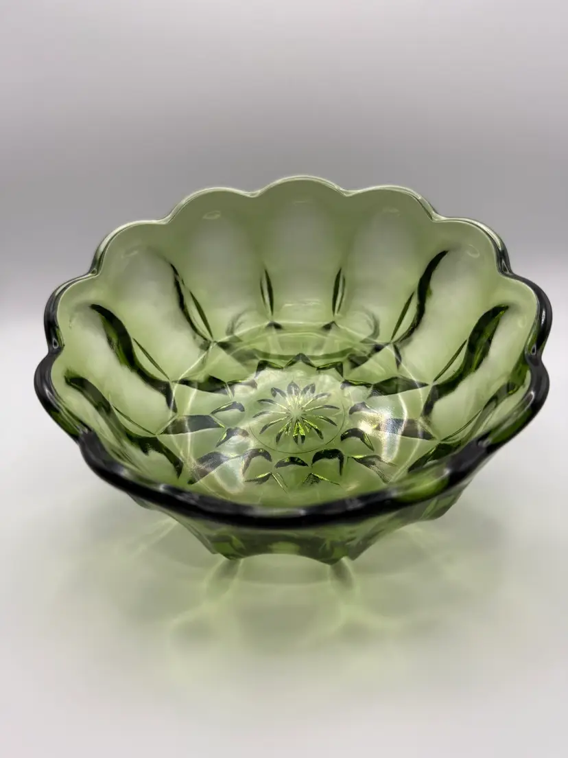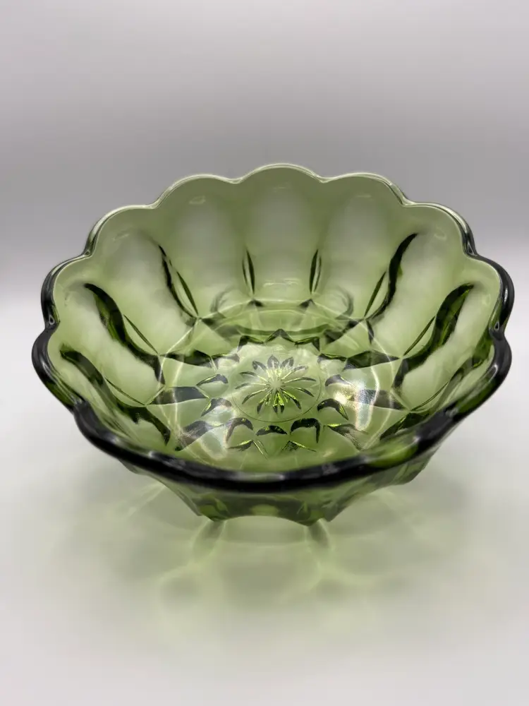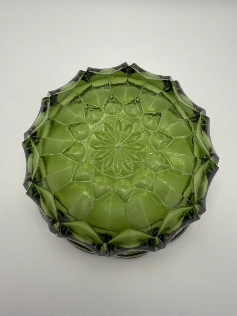 Pressed glass, Fairfield pattern – circa 1972 to 1976 6 inches across 2 1/2 inches tall 14.5 ounces No visible defects