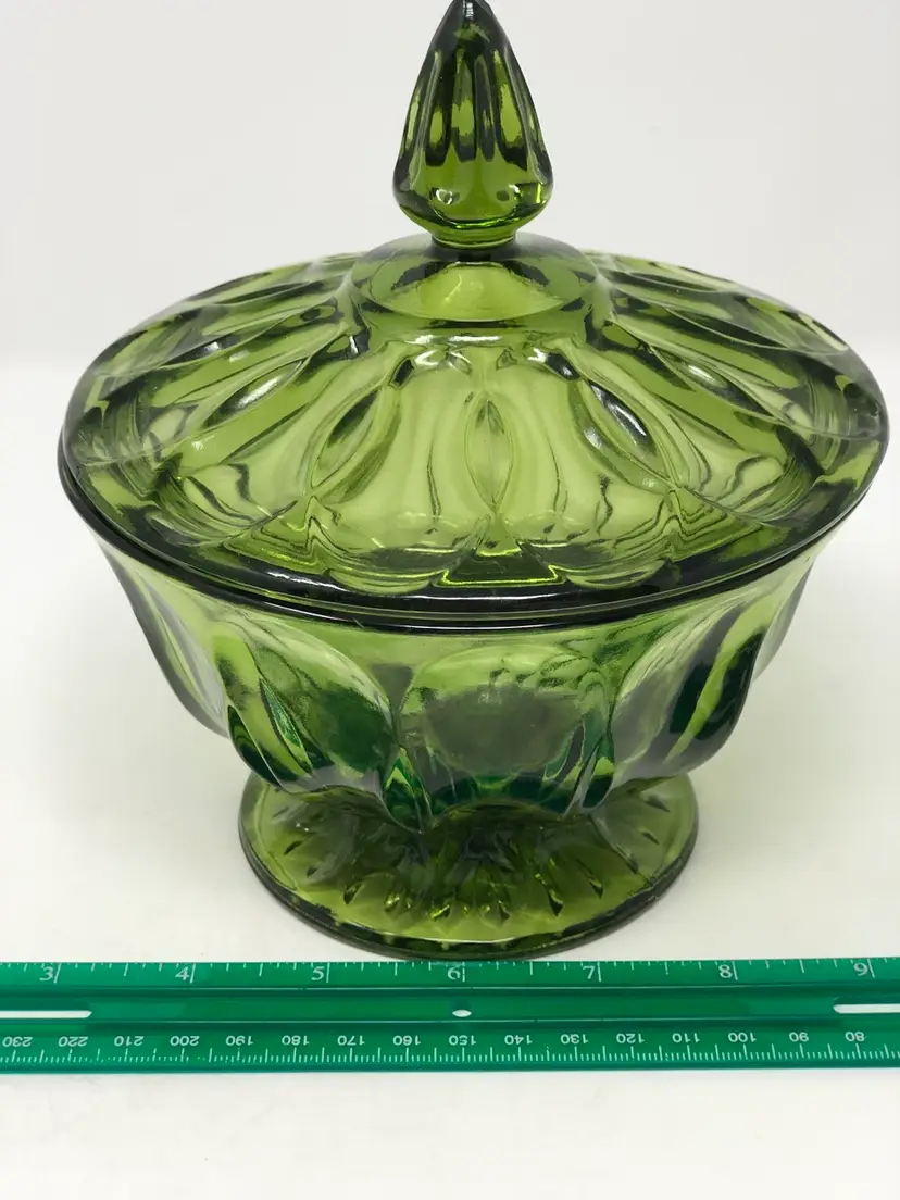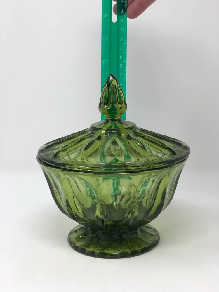 6 1/2" tall with the lid in excellent condition. No chips or cracks, no labels or markings.