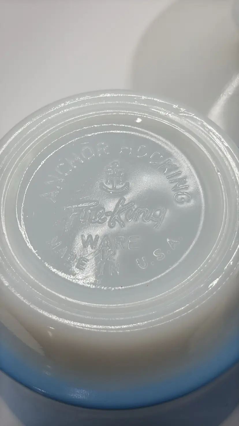 Anchor Hocking Fire King Ware Blue and White set of 2 Condiment dishes or Sugars with one Lid 4.5 inches tall to top of lid x 3.25 inches wide They stack No chips or cracks they look almost new