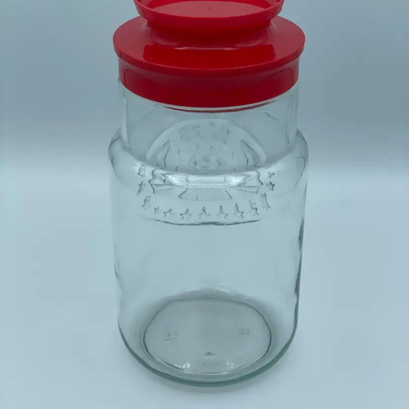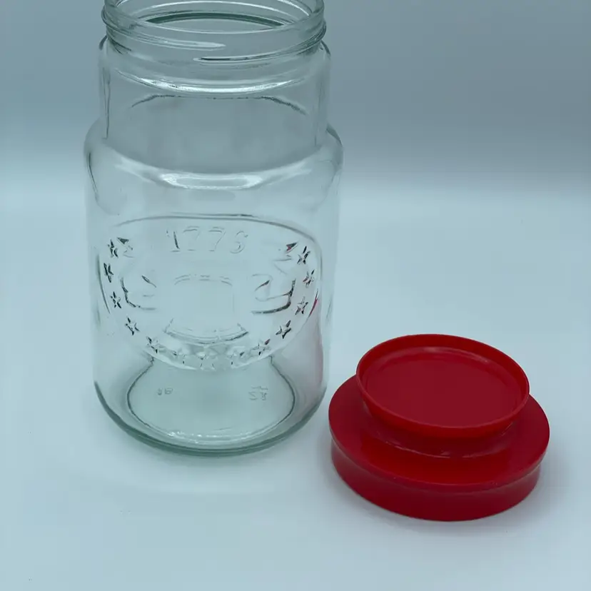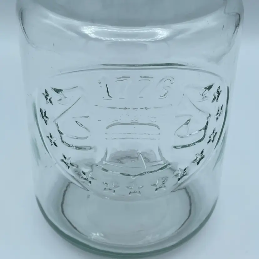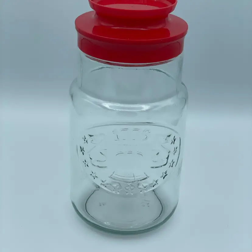Vintage Glass Anchor Hocking Jar With Red Plastic Screw Top. 1776 Bicentennial Design - Liberty Bell with 13 Stars.
