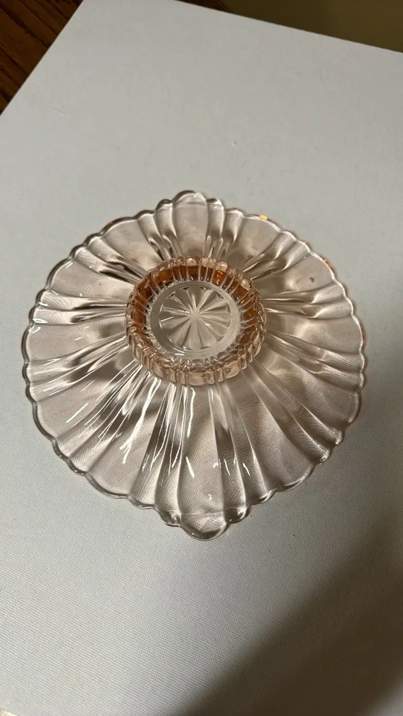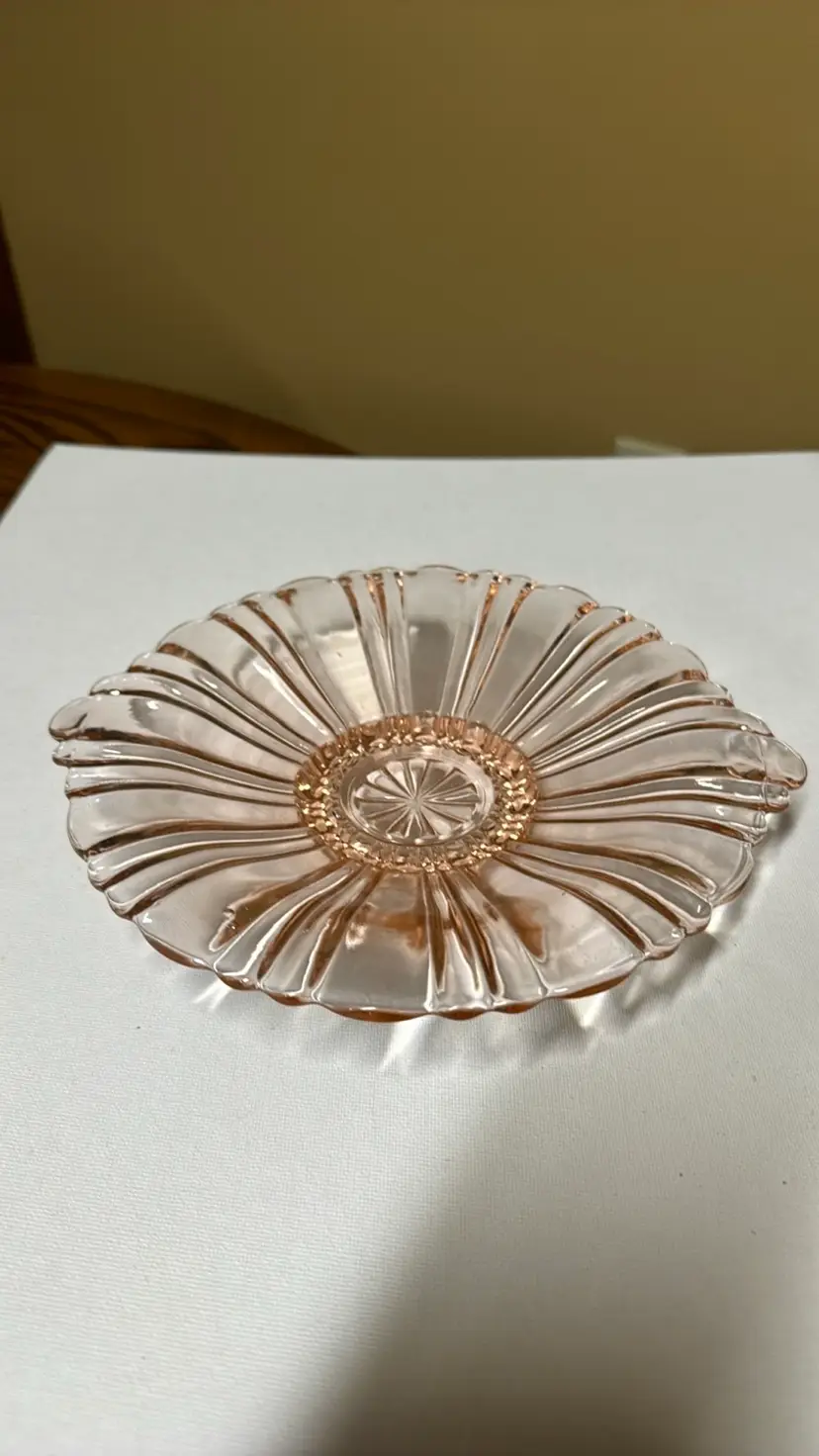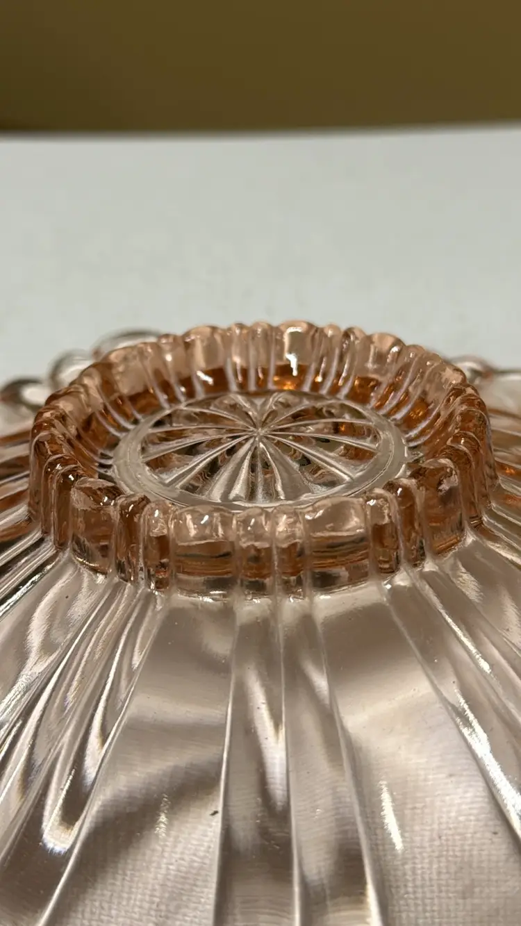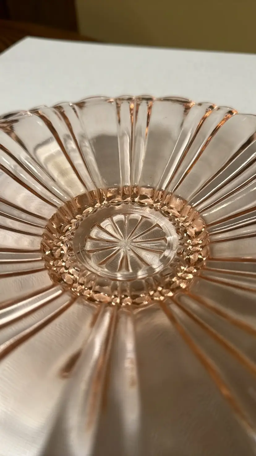 Anchor Hocking Pink Depression Old Café, 8.75" Candy Dish Nice pink dish with no breaks or chips It does glow a little green under black light but it’s hard to capture in a picture (282024m180)